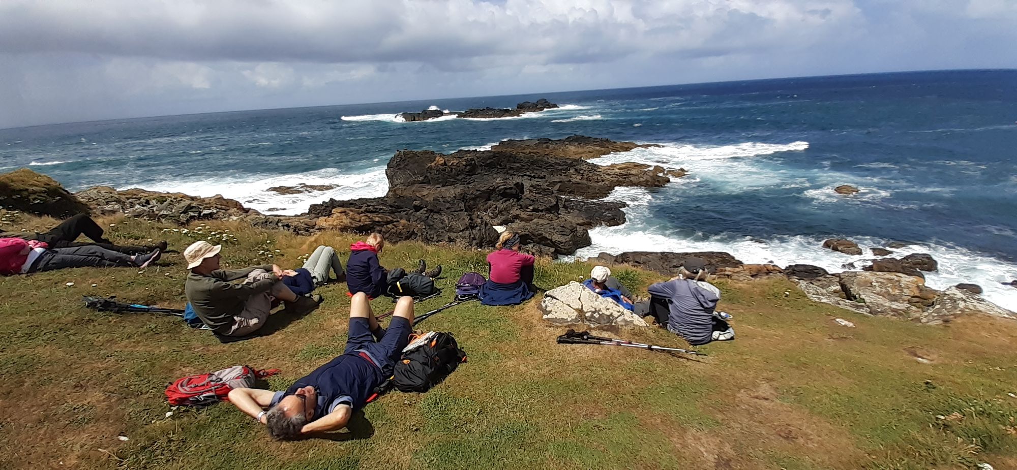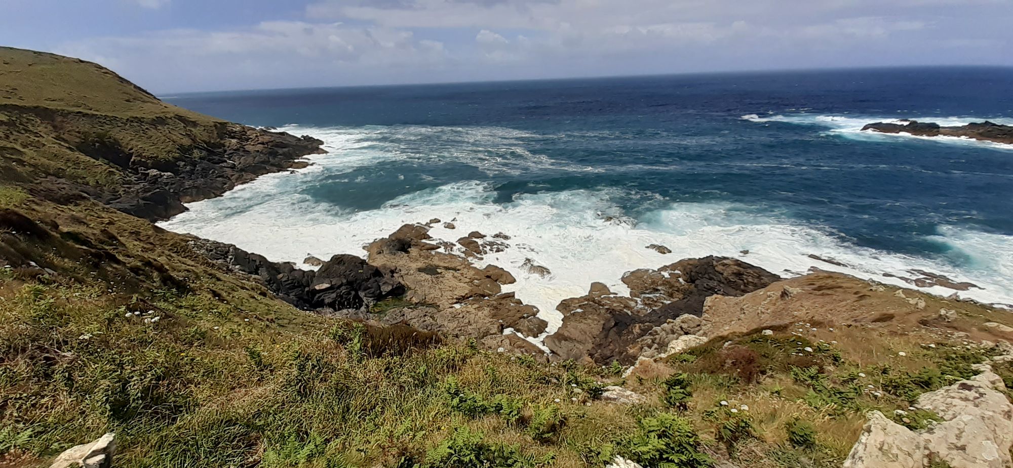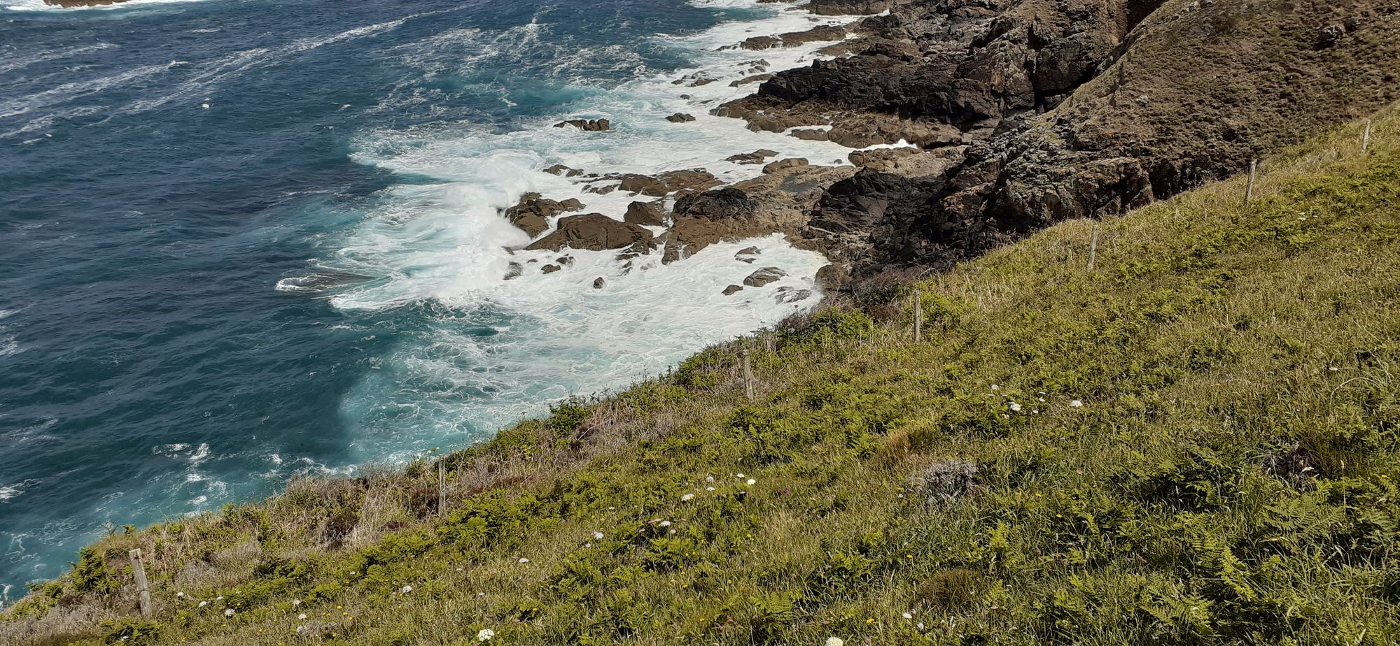 We saw five seals today, two were hanging around while we ate lunch, and three were in a cove further on. They looked like corks bobbing in the boiling ocean.