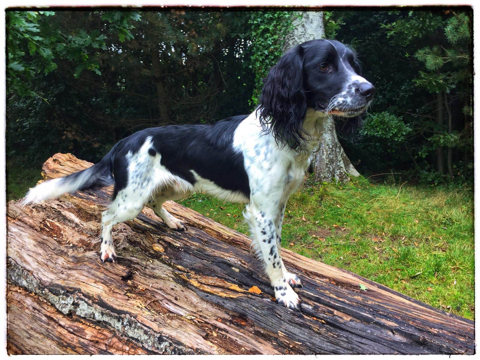 I'm kneeling with Paddy in front of me. I have a leash to a second dog, Crumble, in my left hand, which is why my hand is on my thigh in Rugby Team Pose kind of way.