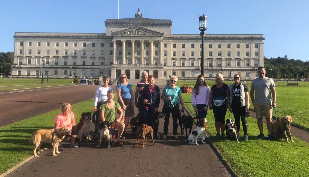 The day after Visa day, I took Paddy to Stormont to walk with the neighbourhood gang. Here we are in front of the national assembly (which hasn't been sitting for more than 1,000 days).