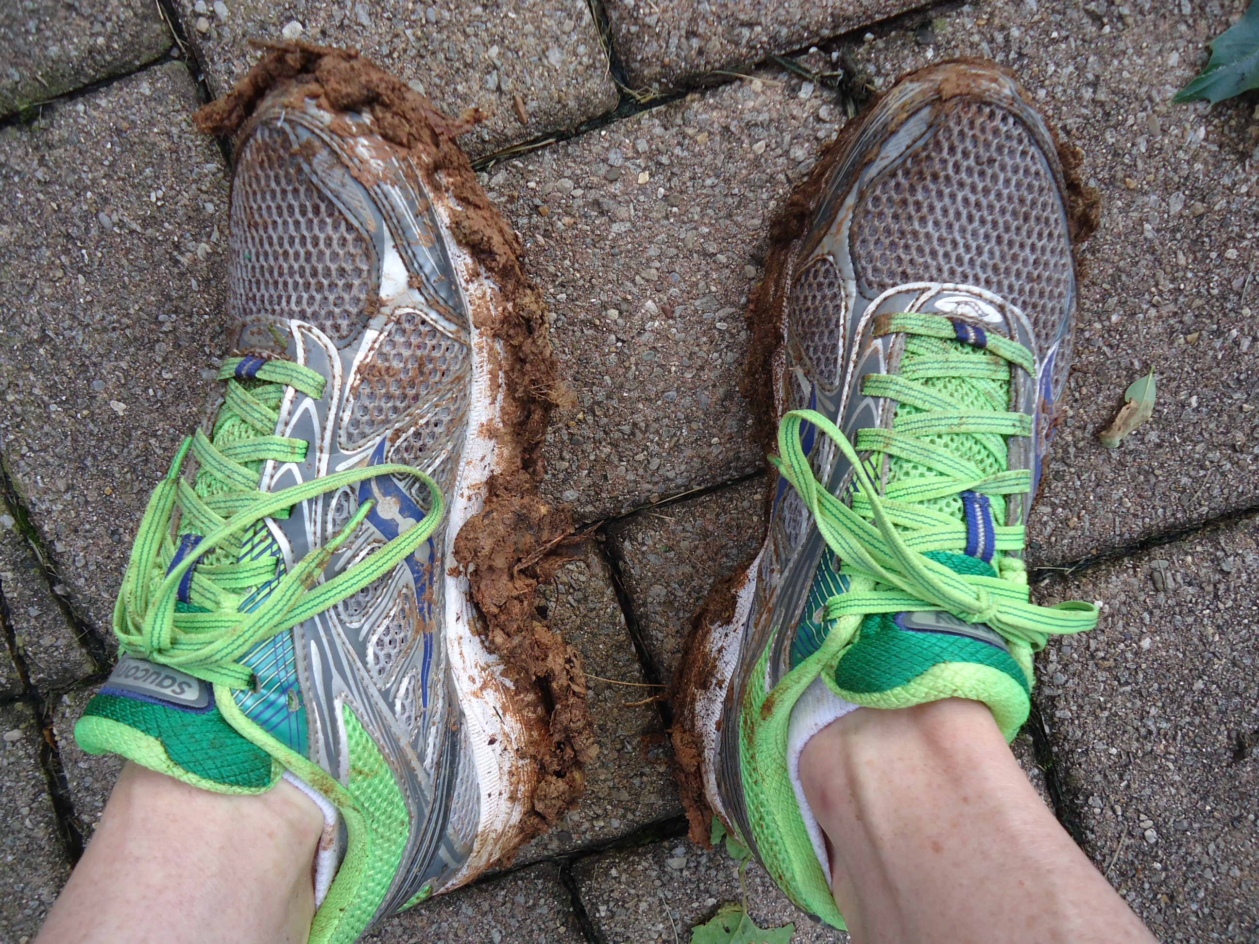 West Virginia's red clay soil makes me miss Pennsylvania's boulder-filled soil. At least, once you get the rocks out, the soil is good in PA. Here are my shoes after planting the laurels: