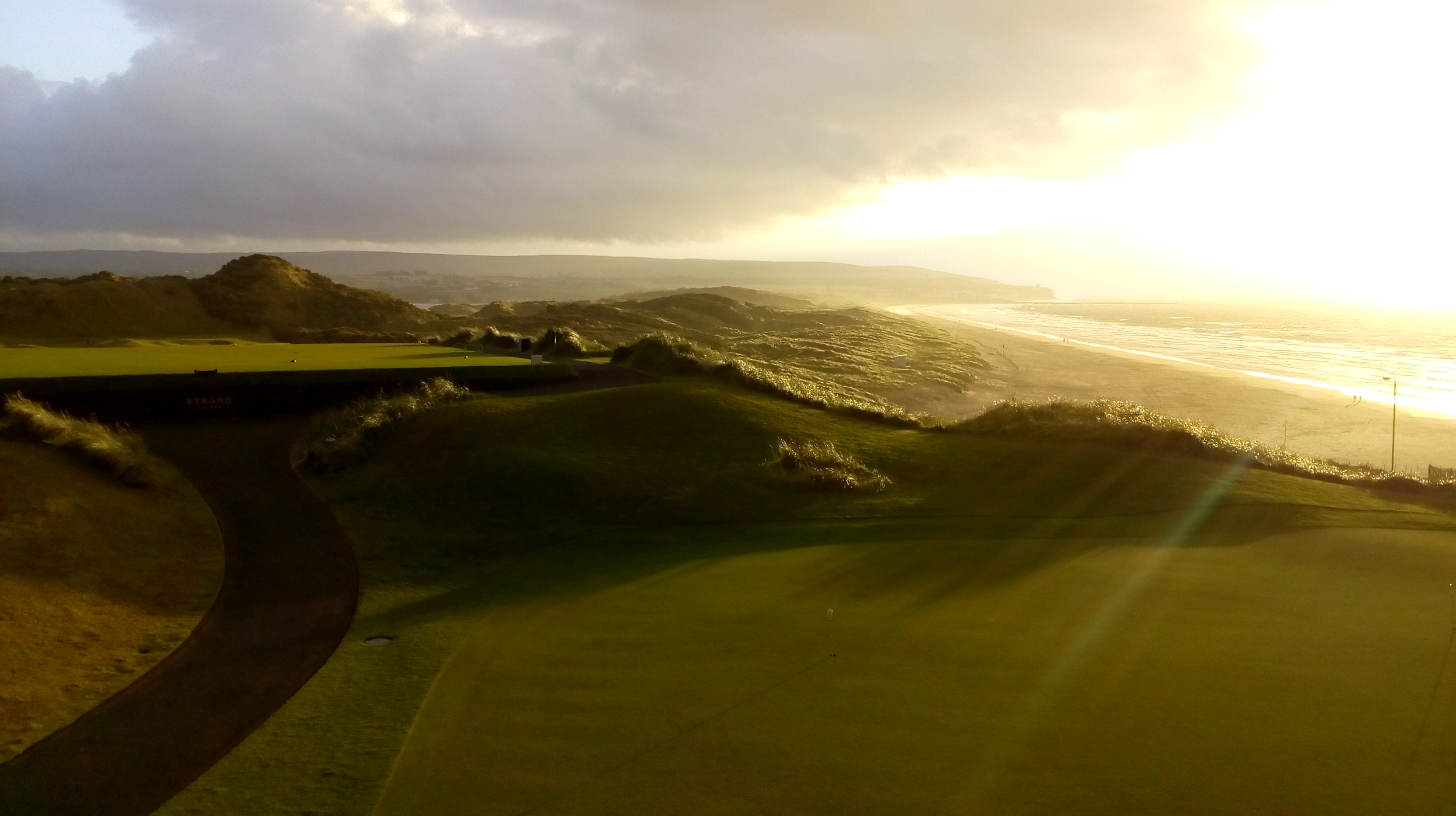 After work today, I took the train up to Portstewart, where North Coast Swing organised a dance at the golf club. The view from the practice putting green: