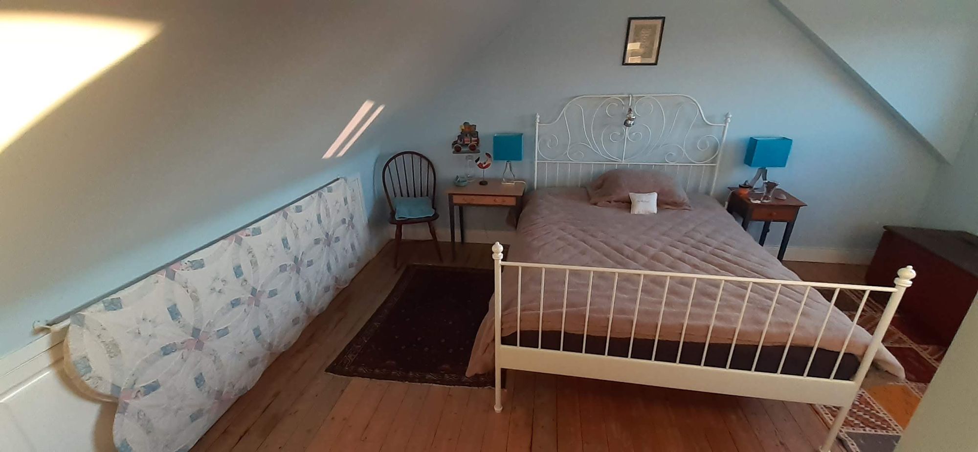 New cozy bedding for mom, quilt hung to cover thin wood doors into crawl space, and black plastic behind the doors. I have insulation left over from the big attic that will go into this smaller crawl space when I can summon the energy to empty this crawl space.