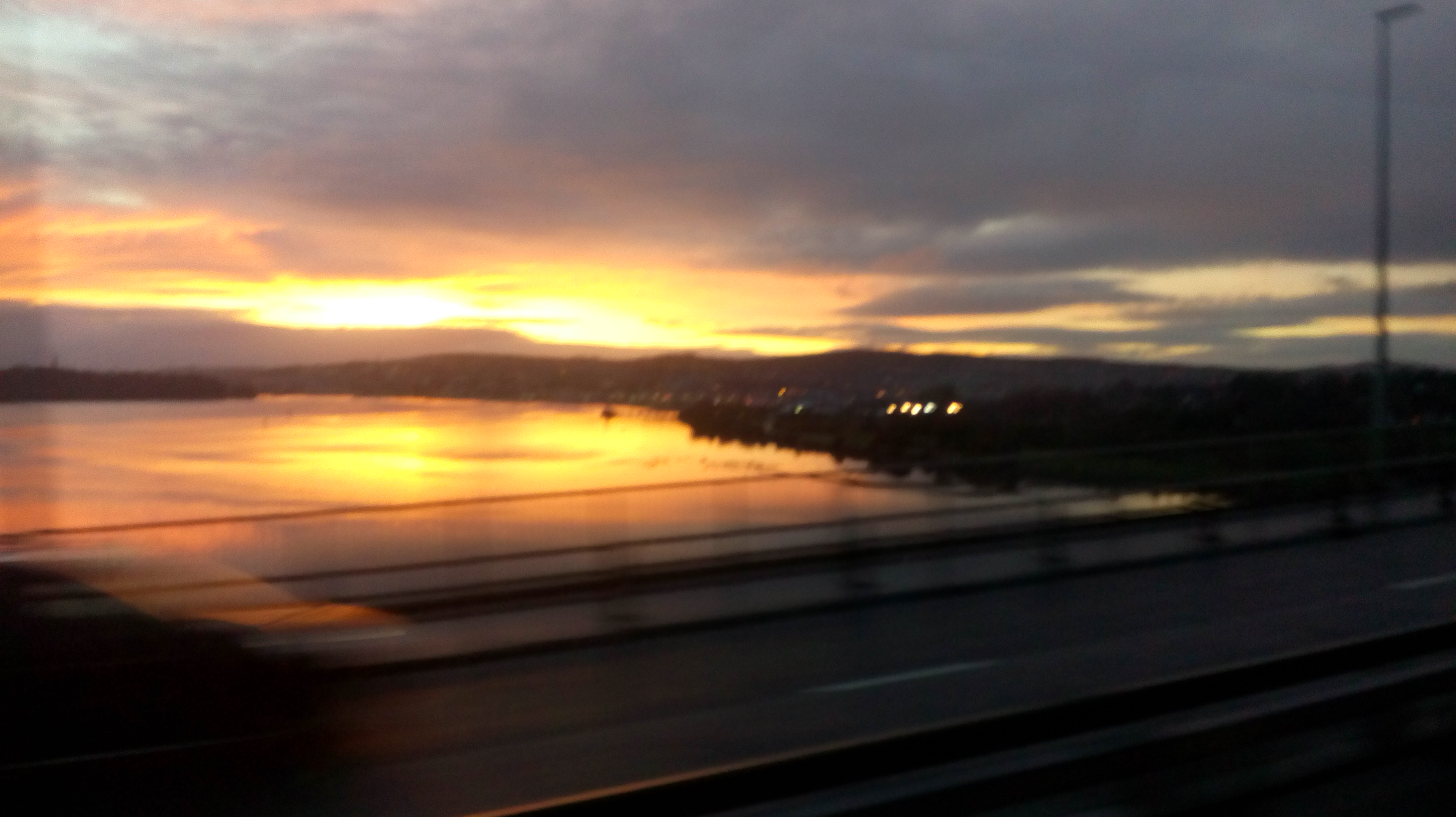 I’d paid my 21 pound roundtrip fare for the bus so you’d think I’d stay the weekend. What I learned from shingles, however, is that if you are busy during the week and then you are away multiple weekends in a row, there can be consequences (I was in Portrush and Derry last weekend and London the week before--similar to my pre-shingles schedule). I had planned to see Mrs. Walker and Henrietta again on this trip, however Mrs. Walker was having a bad day so a visit wasn’t in the cards. I was happy to get on the bus and relax on the way back to Belfast. The sun was setting as I left town so I took this photo of Derry from the new bridge.