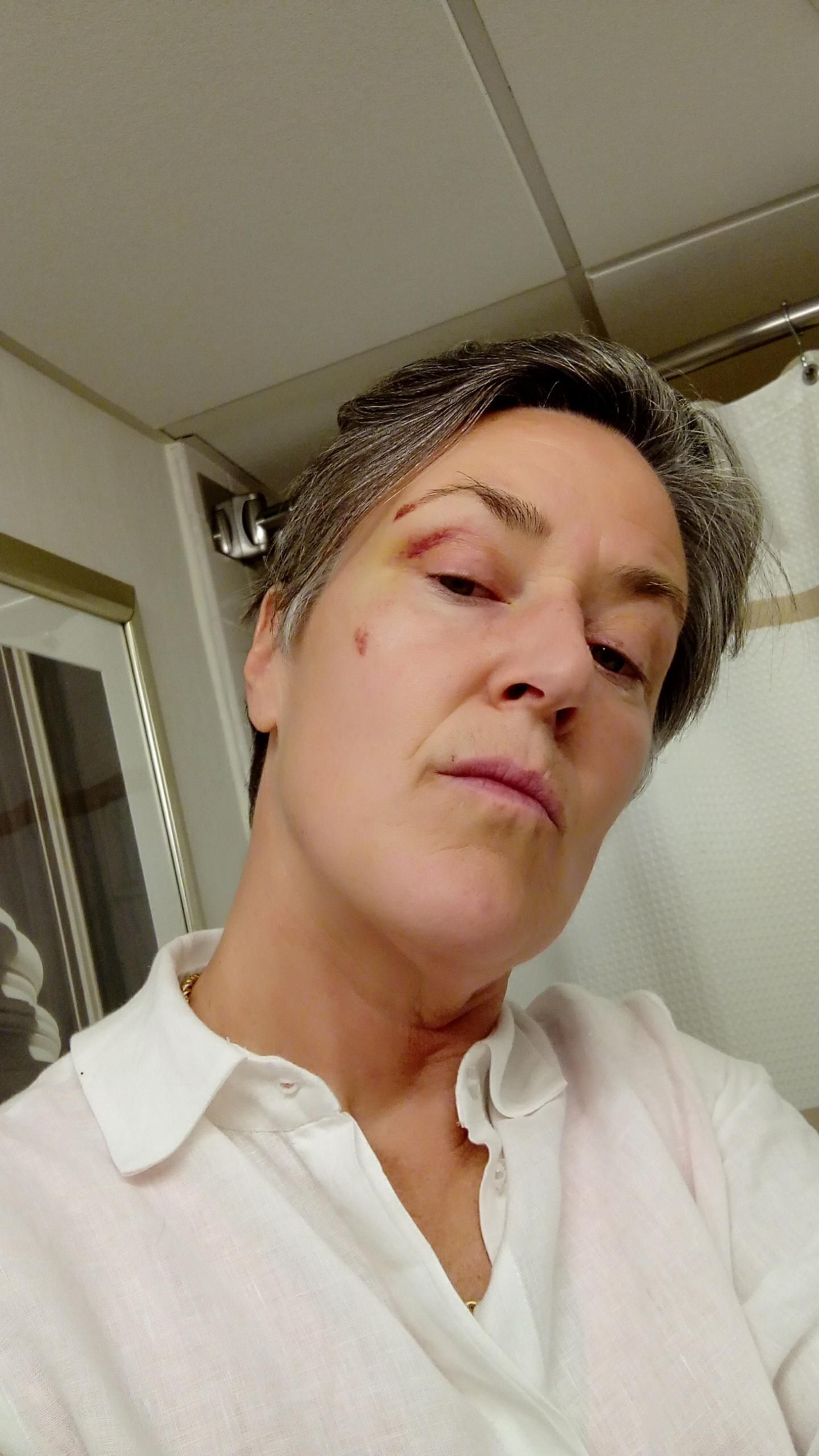 Here's me in the hotel bathroom looking rather arch as I show off my shiner.