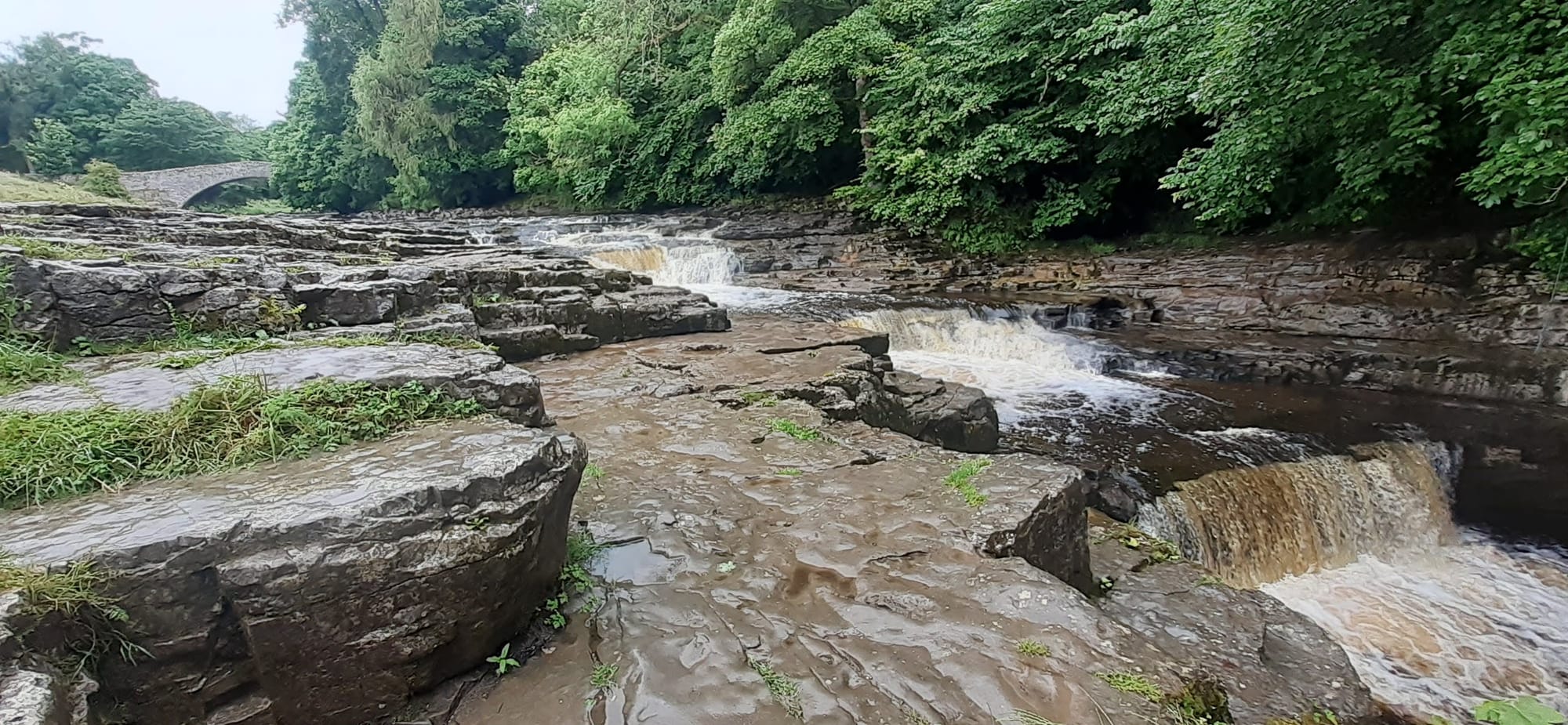 It is a massive half-circle-shaped tunnel where hot fires cooked the limestone in the middle core, turning it to lime. The tunnel was a high bricked-ceiling arch that you could walk along. It reminded me of ancient catacombs. We had lunch in there then set off for Cattrick Force, a massive waterfall. From there upwards until we had a lovely view of Ribblesdale – a valley divided into fields by stonewalls. We walked over hill and dale until we eventually returned to Settle. A 9-mile walk that was squelchy but lovely.