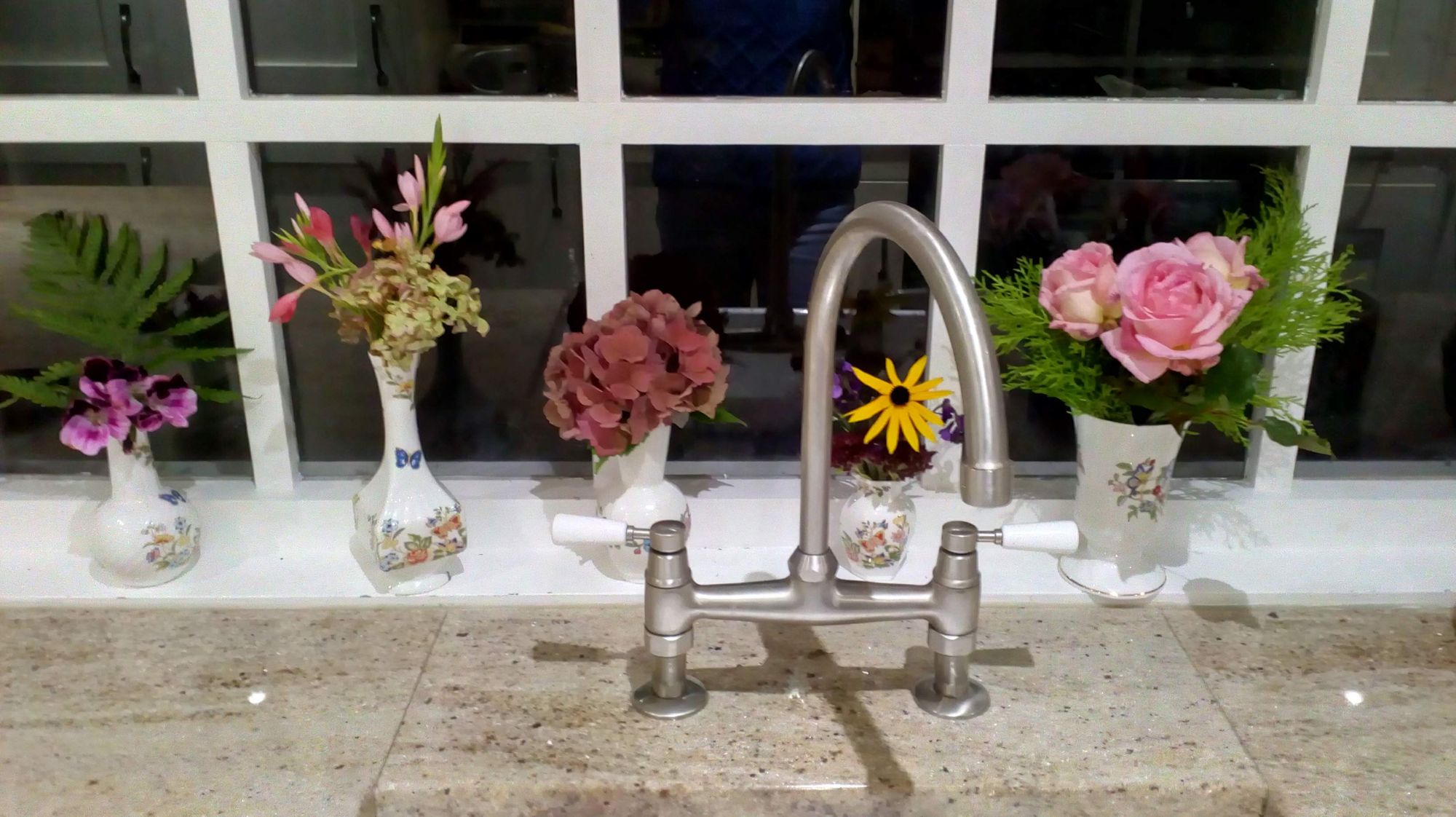 I've had a cold this past week so have been laying low, watching a lot of stuff on my laptop. A while ago I bought three Aynsley vases and have been putting them to good use with flowers from my garden.