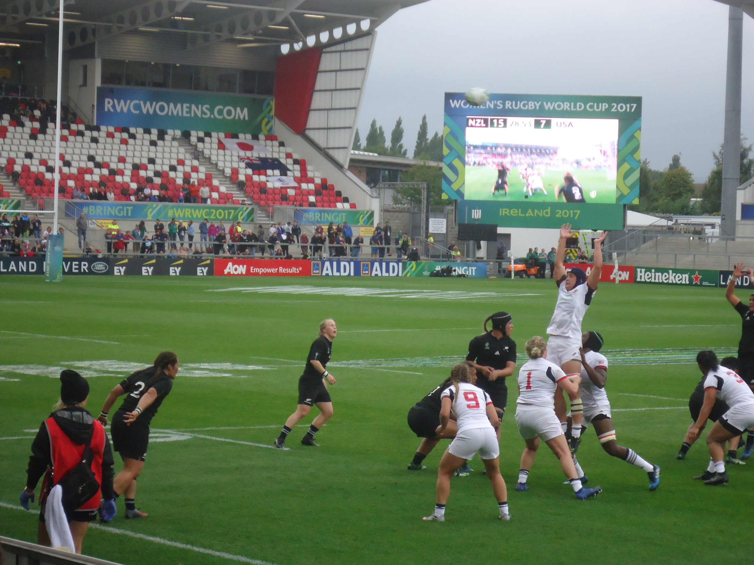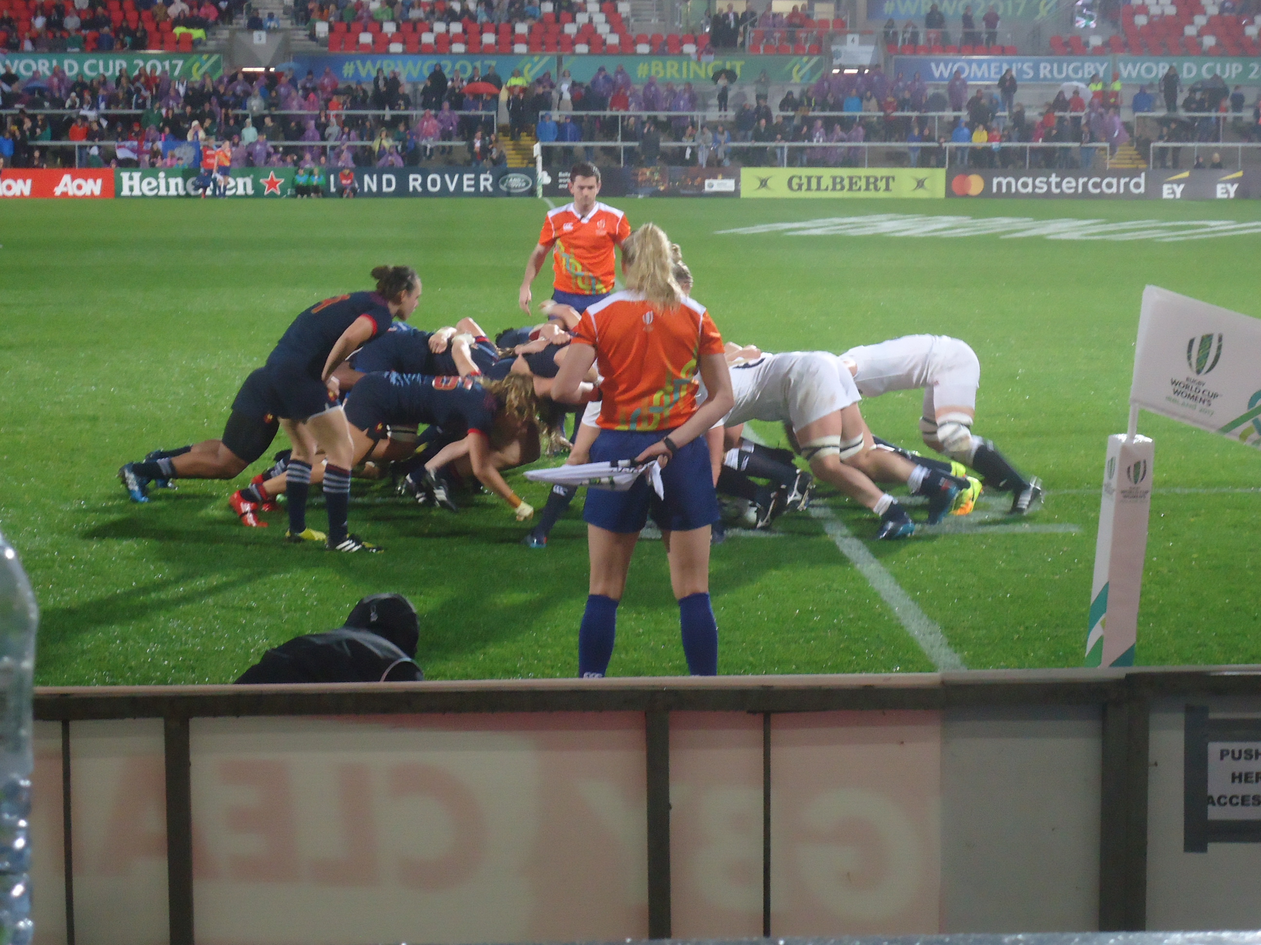 ...is being co-hosted by Dublin and Belfast, where the semi-finals were held today. I watched the New Zealand Black Ferns walk all over the U.S. Eagles and I watched a well matched game between England and France. Here is a French-English scrum.