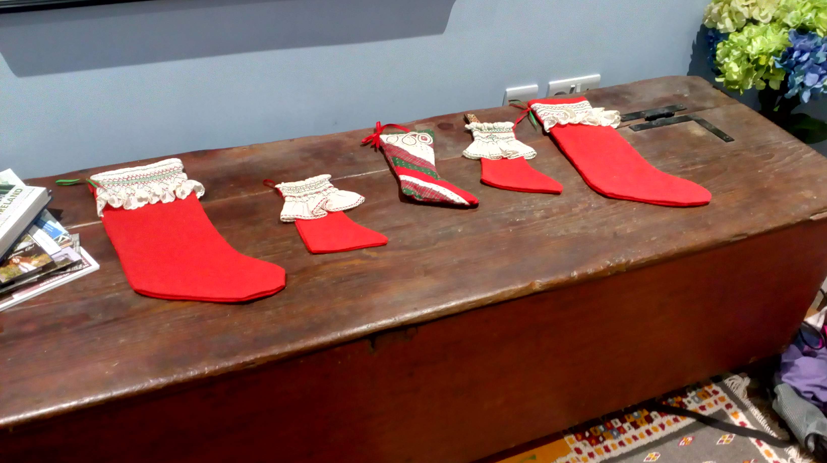 My main focus in recent weeks has been work, Paddy, and getting Christmas shopping done. Decorating the house has just not happened. I put some of my mom’s smocked Christmas stockings on the barn box--hardly decking the halls.