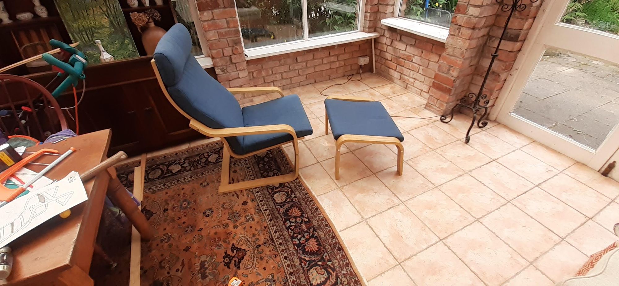 Next up were two pieces of furniture from IKEA. I'm really bad at understanding instructions so I was very pleased to pull this off. I bought these to test whether the dimensions of the sunroom that will be part of the conservatory conversion will be big enough. The chair and ottoman confirmed the dimensions are right so I'm hoping for final drawings soon from the architect, so we can get on with this.