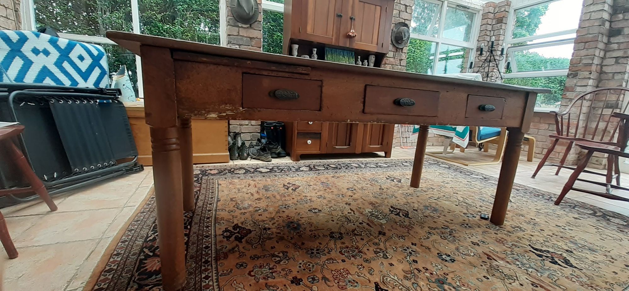 I also listed two of four pieces of furniture that I want to sell on a classified site, no takers so far. I'm trying to get the conservatory cleared out so less work when construction gets underway. Here's my old kitchen table, with a Dutch cupboard in the back. I'm sorry to see them go but they've never really fit in in this house.