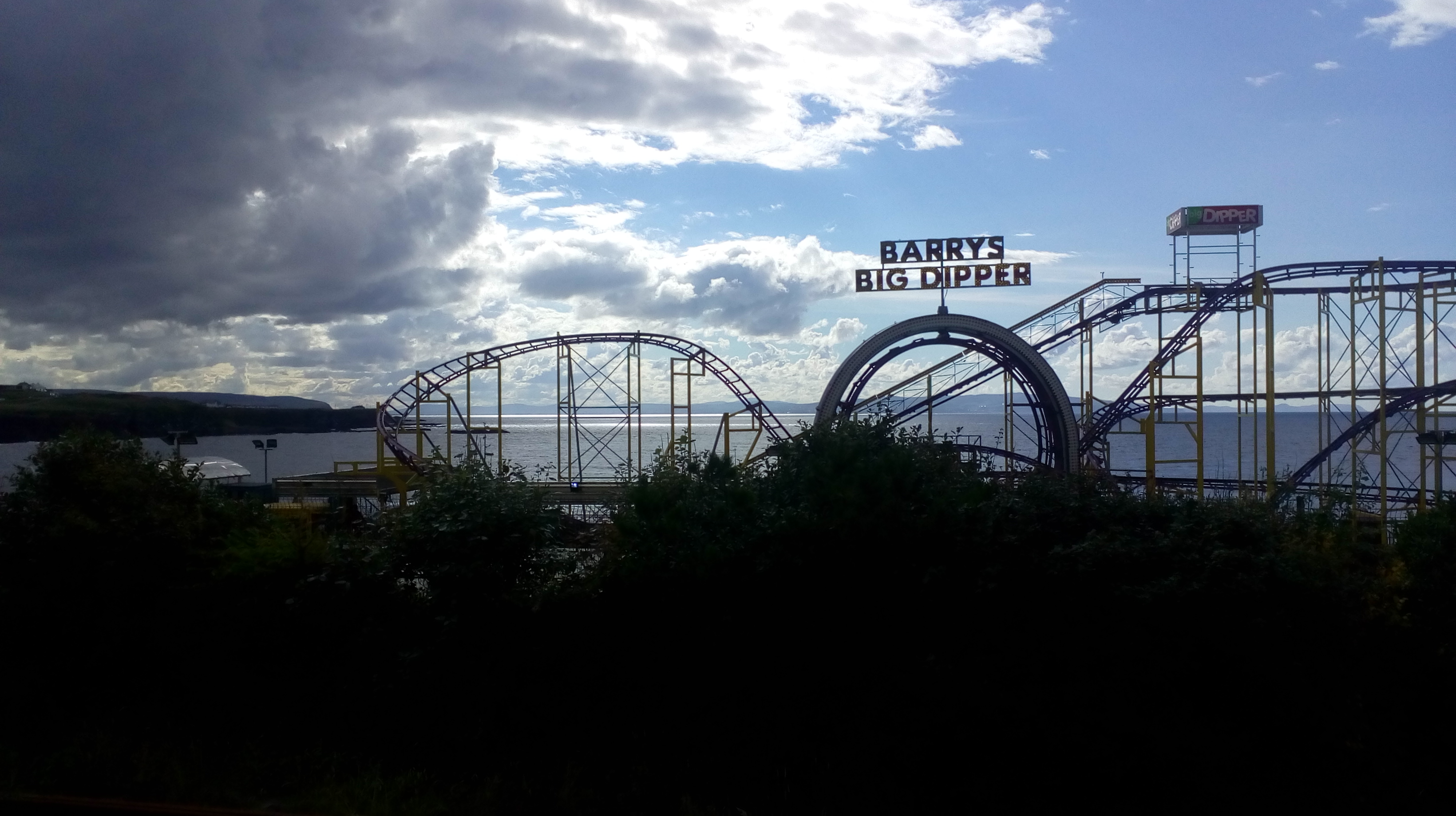 I spent today in Portrush, a seaside town on the North Antrim coast, complete with arcade games, pizza shops, ice cream, and places selling plastic buckets and shovels. It’s like the Ventnor or Margate of my childhood.