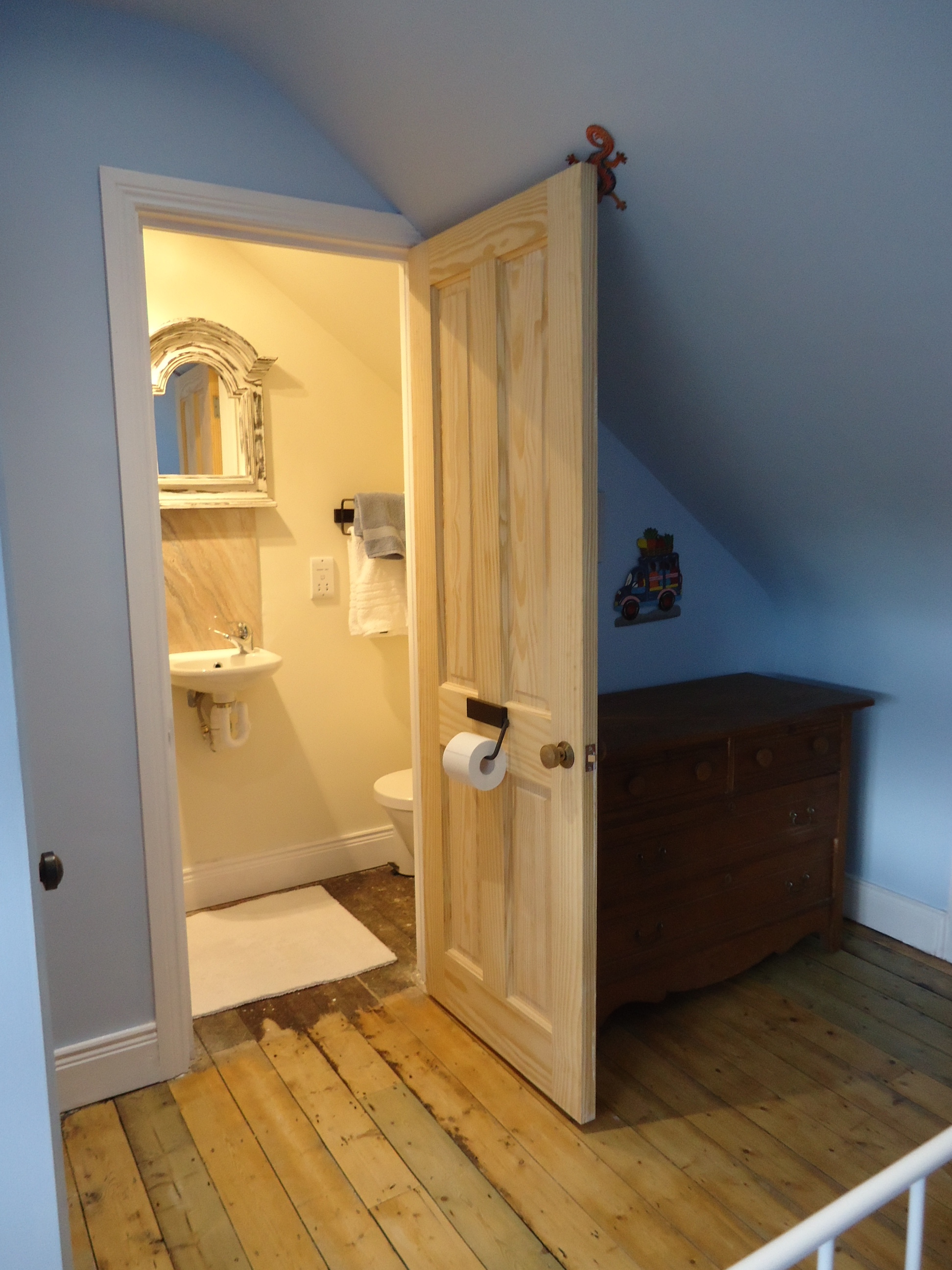 In the corner is an old water reservoir, which was part of the oil heating system. That was removed to make room for the en suite bathroom.