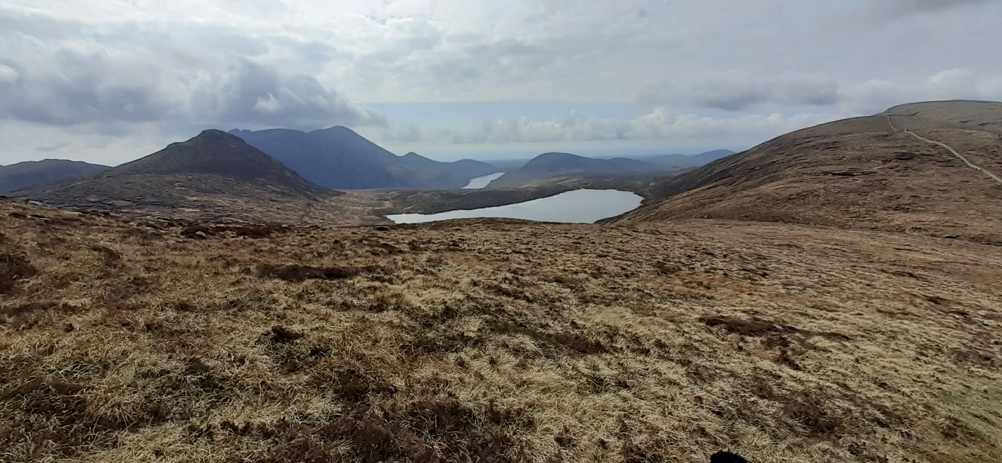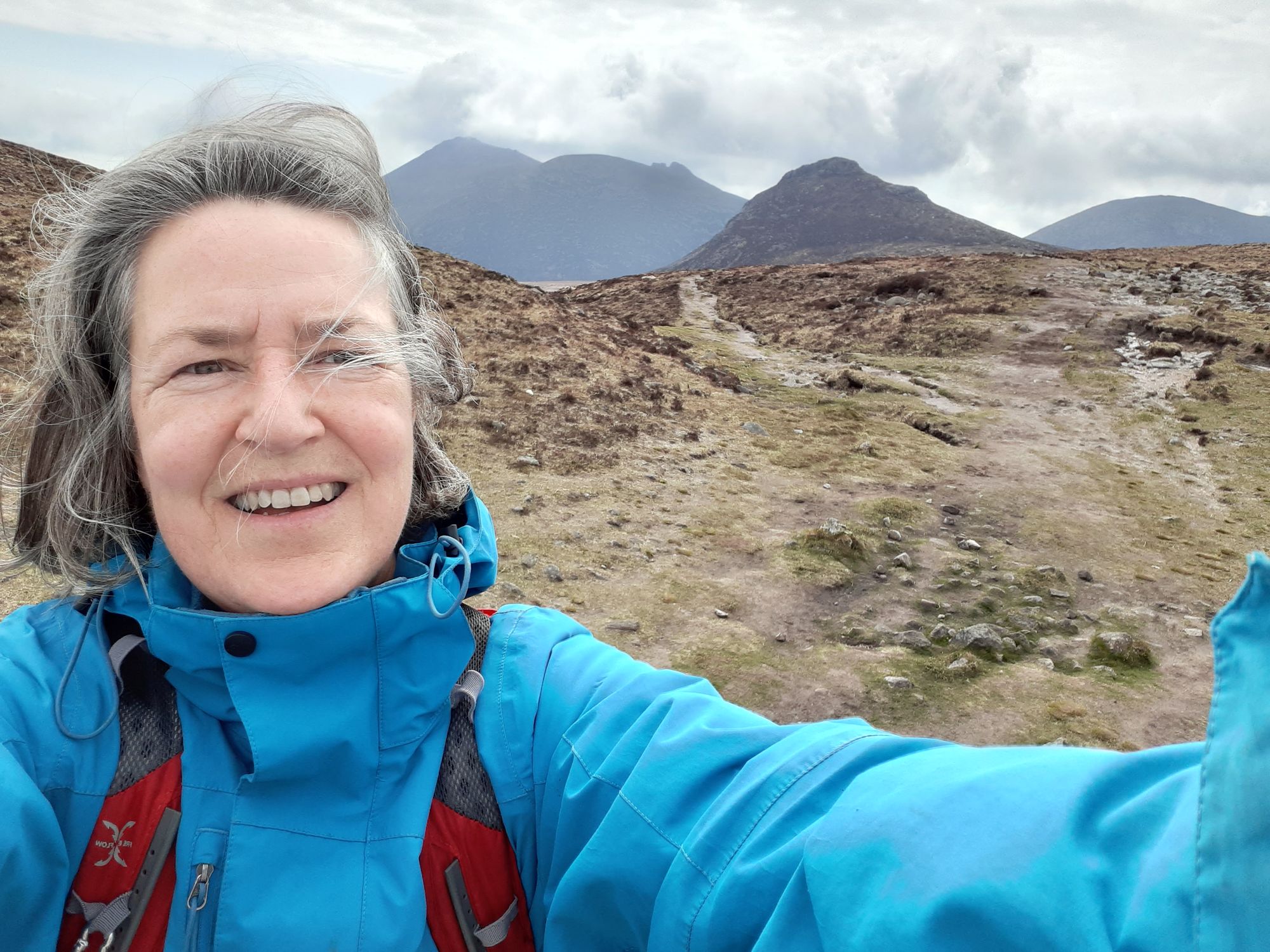 I took the day off and went for a hike with three neighbours. Valerie drove so I got to sit back and enjoy the view, which is spectacular as you approach the Kingdom of Mourne through green patchwork valleys. We hiked up Slieve Loughshannon and then up Doan and circled back.