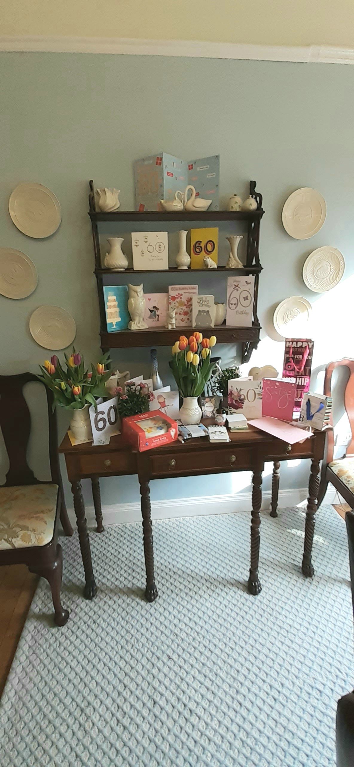 I think I have 12 cards that each reference a 60th birthday--but no two the same. What are the odds of that? Eddis also gave me a beautiful big hanging basket, which will go out front once the nighttime temperature rises. I feel so lucky to have landed exactly where I did--on a very friendly street in a very friendly country. My family extends to my mom, being estranged from my sister, so my friends are critical to my mental health and I cannot say enough how grateful I am to have them in my life.
