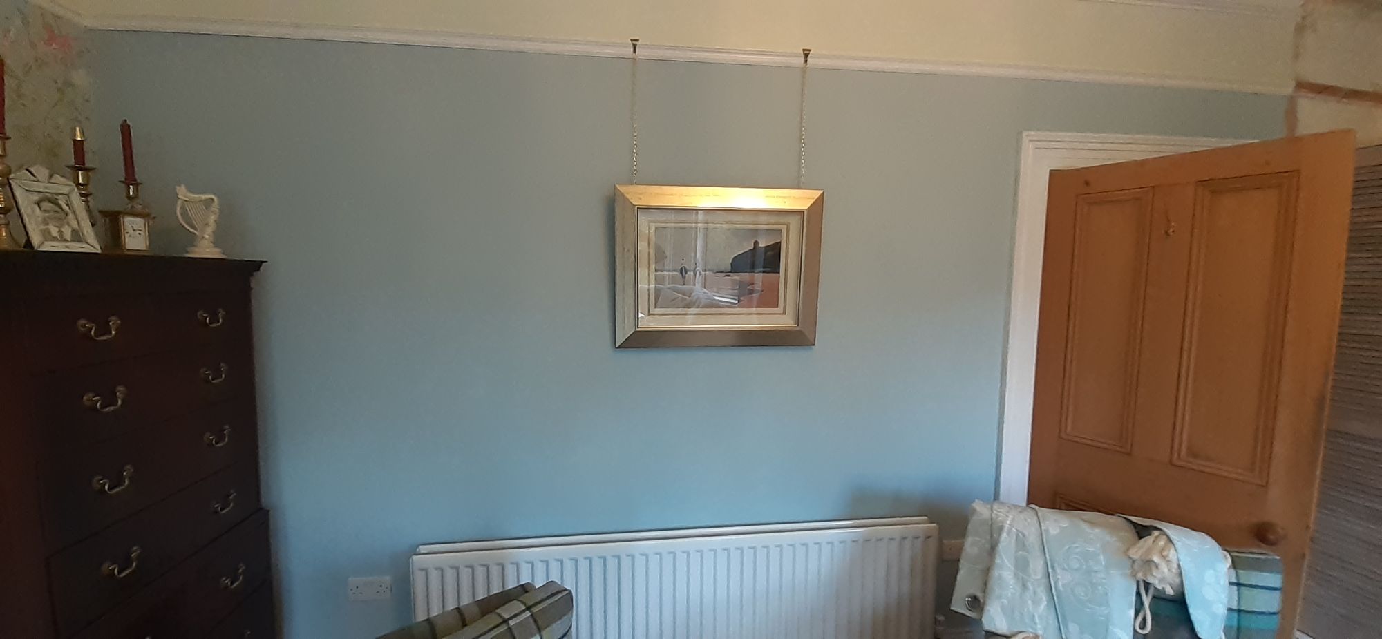 I haven't figured out what else goes on the wall below but I got the chains and S hooks to at least hang one painting.
