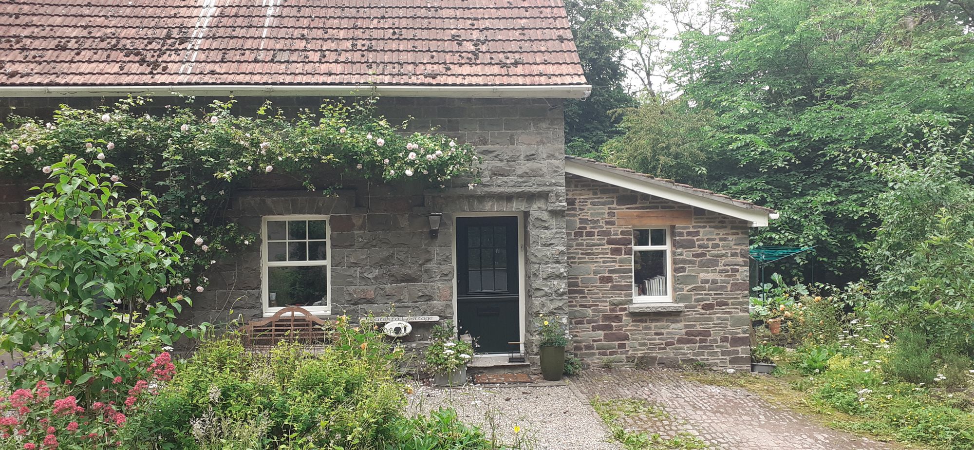 On the way down we stopped at a memorial for Tommy Jones, a 5-year-old boy who got lost on the mountain and died of hypothermia in 1900. As we neared the bottom of the mountain, our trip leader, Jill (22-year HF veteran) told us we had done only half the mileage. So the afternoon was spent crossing fields, climbing over stiles, crossing fields, climbing over stiles, etc. It was very hot and I was ready to be done with the hike a few miles before the hike was done. But I have to say the fields were very pretty--red and white clover and a mixture of colourful grasses.