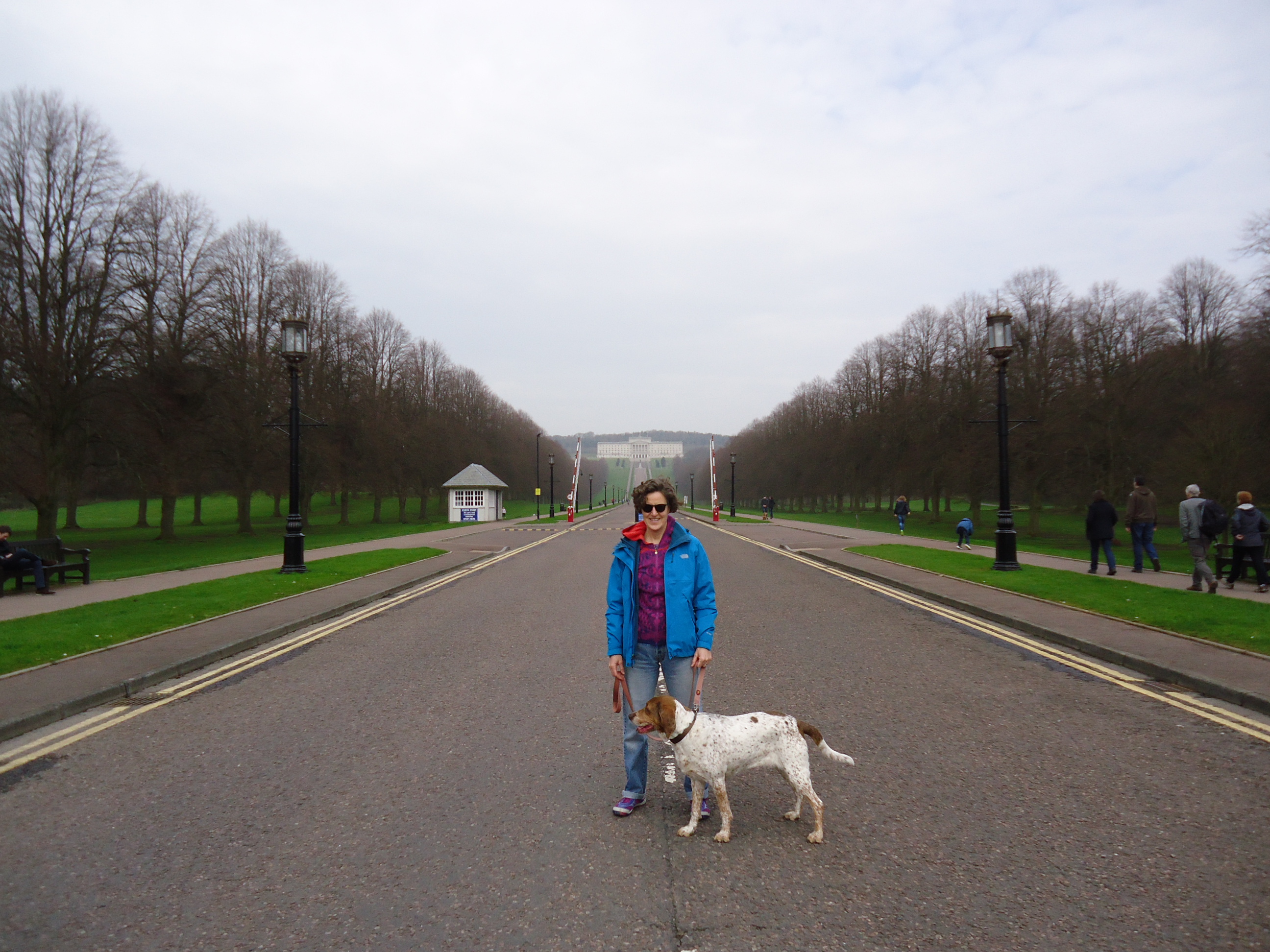 When David was here alone, he went to a lot of Meet Up events to connect with people. Today, we went on a Meet Up walk in the park surrounding Stormont, the N. Ireland parliament. Afterward, we went to a hotel for tea.