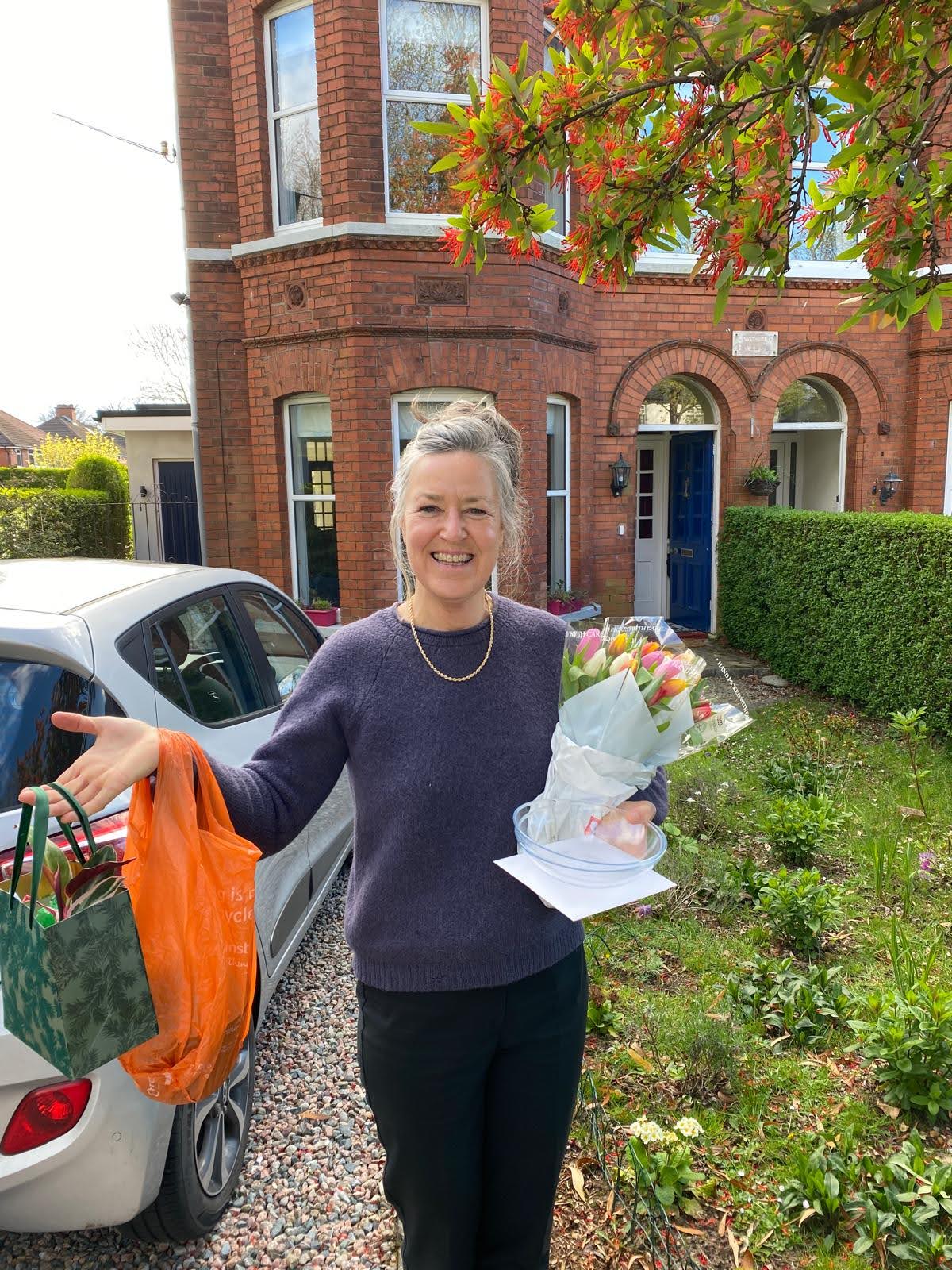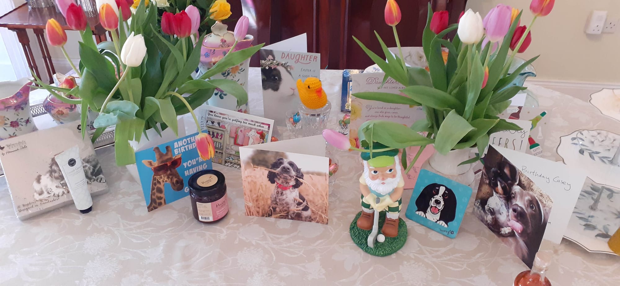 The festivities began a week early with the trip to Mount Stewart (see earlier post). This, my birthday weekend, began with dinner at an amazing Vietnamese restaurant in Ballyhackamore with my friend Ali. Earlier, she stopped by with presents from herself and her sister Christine. She documented this for Christine.