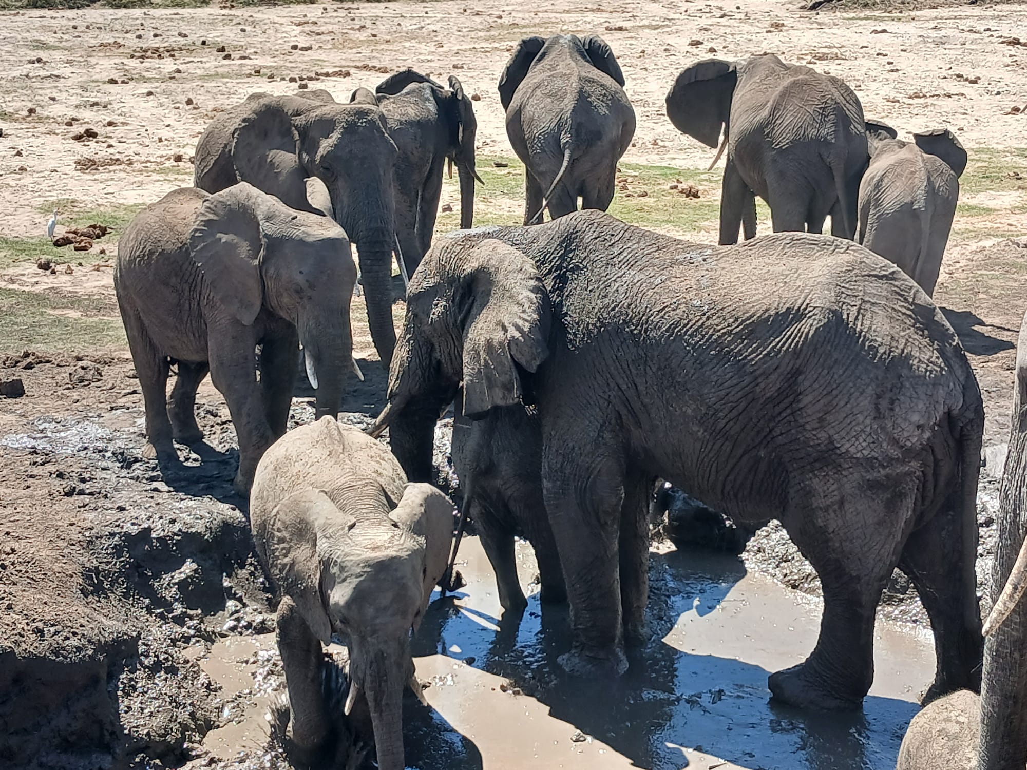 They scooped the mud in this hole onto their backs and the young ones struggled to get out of the mud hole, eventually tipping themselves forward. We probably parked for at least a half hour to watch three families of elephants moving around this water source. There was a tree stump to the right of this frame where the small elephants scratched their rumps – adorable.