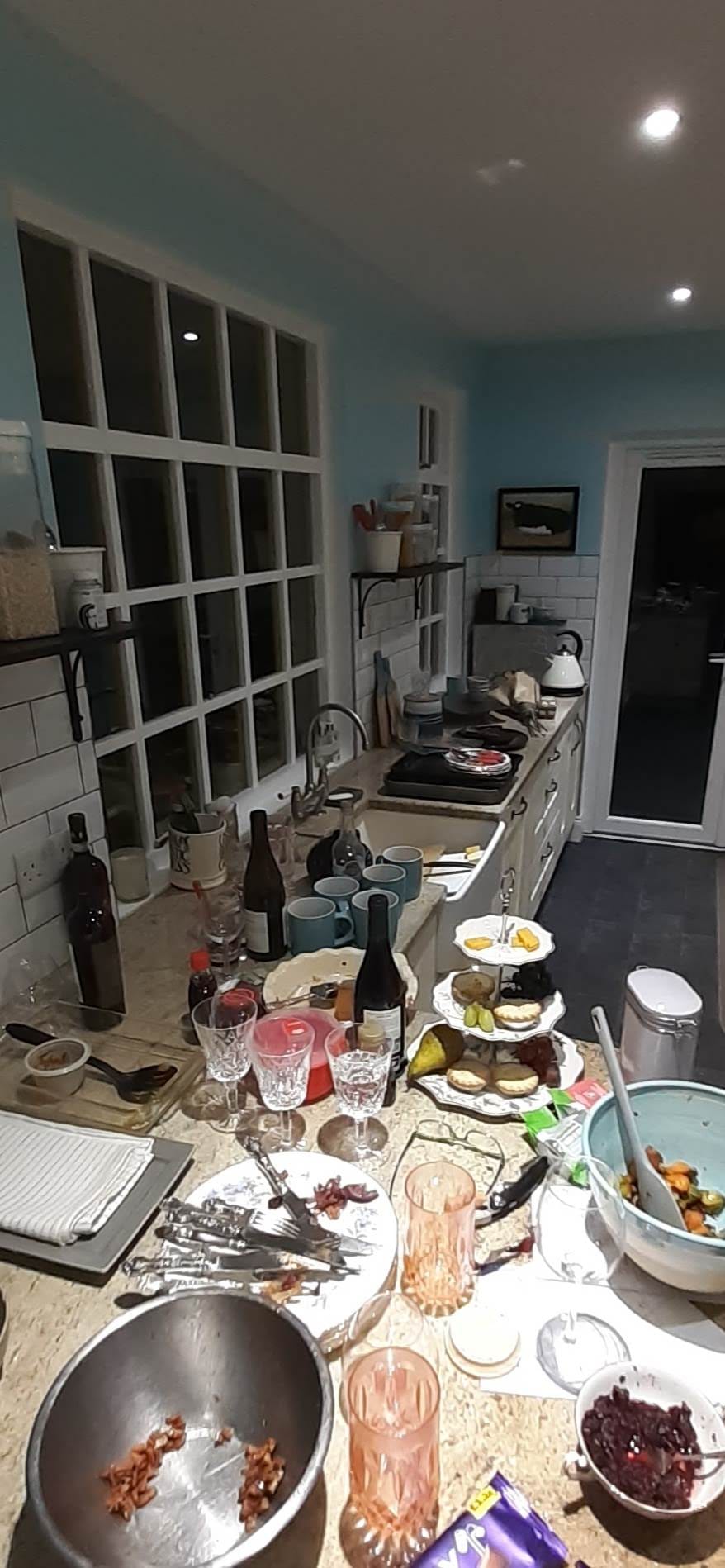 My guests were Tiernan and Olivia from next door, my golfing buddy Ali, and Ben, the Queen's student from Uganda whose grandmother I knew in Pennsylvania. I knew that Ali refereed swim meets but I didn't realise she was also part of the rowing scene. Tiernan and Olivia row, so they talked most of the night about people they knew in common and various aspects of boat races. A bit boring for poor Ben. My friend Eddis, who has traveled in Africa quite a bit, wasn't able to make it, unfortunately. As I drove Ben back to his dorm, he said he is usually quiet and quite enjoys listening to others. Below, the aftermath.