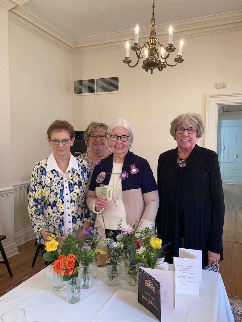 The photos above are taken in her kitchen, where she has two bouquets from my Casey cousins and my niece, plus lots of cards. The picture below was taken at the luncheon.