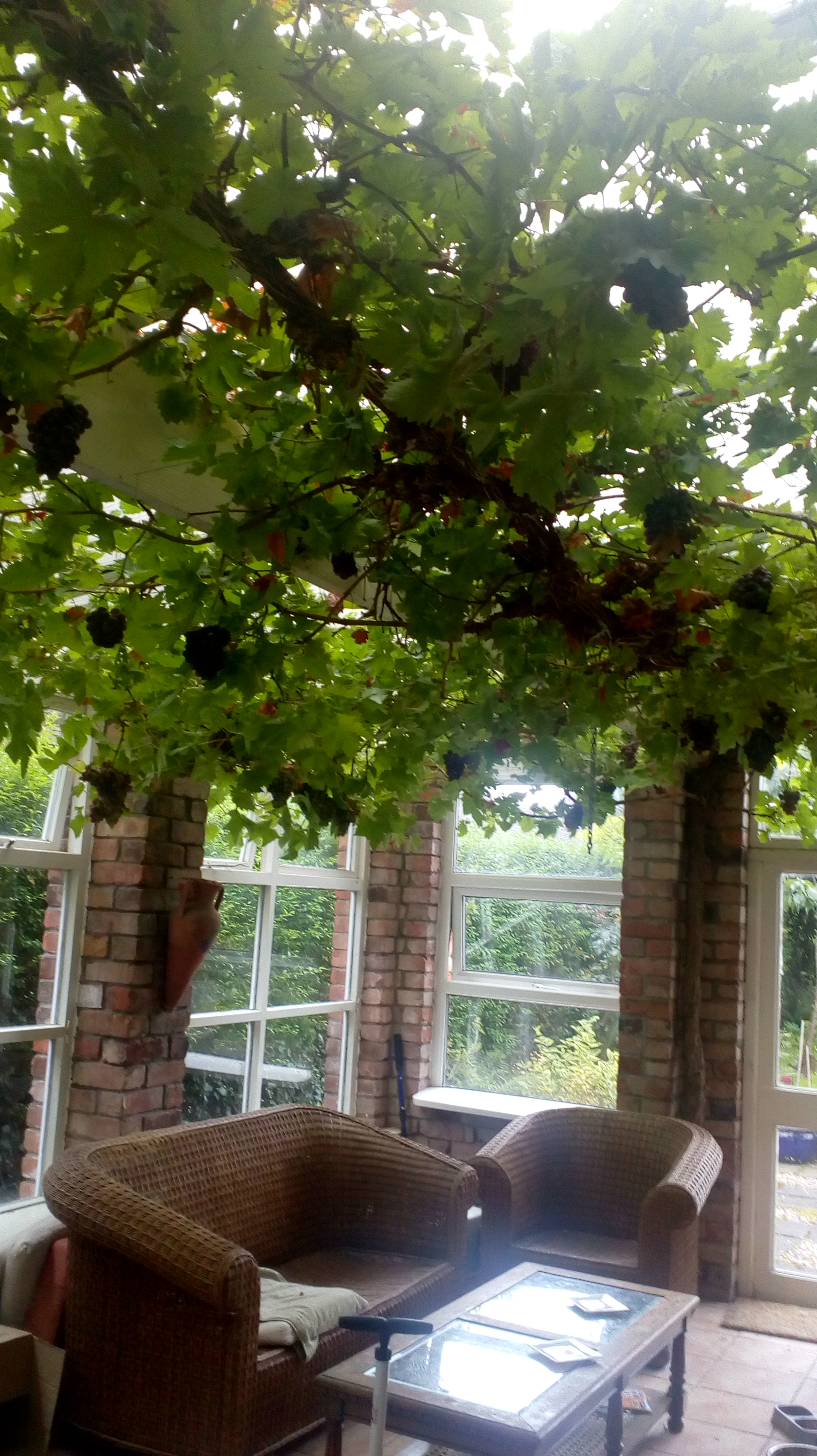 As I’m sure I’ve mentioned, we have a grapevine in the catservatory (a glassed-in room that is covered in fur and cat litter due to the residents).