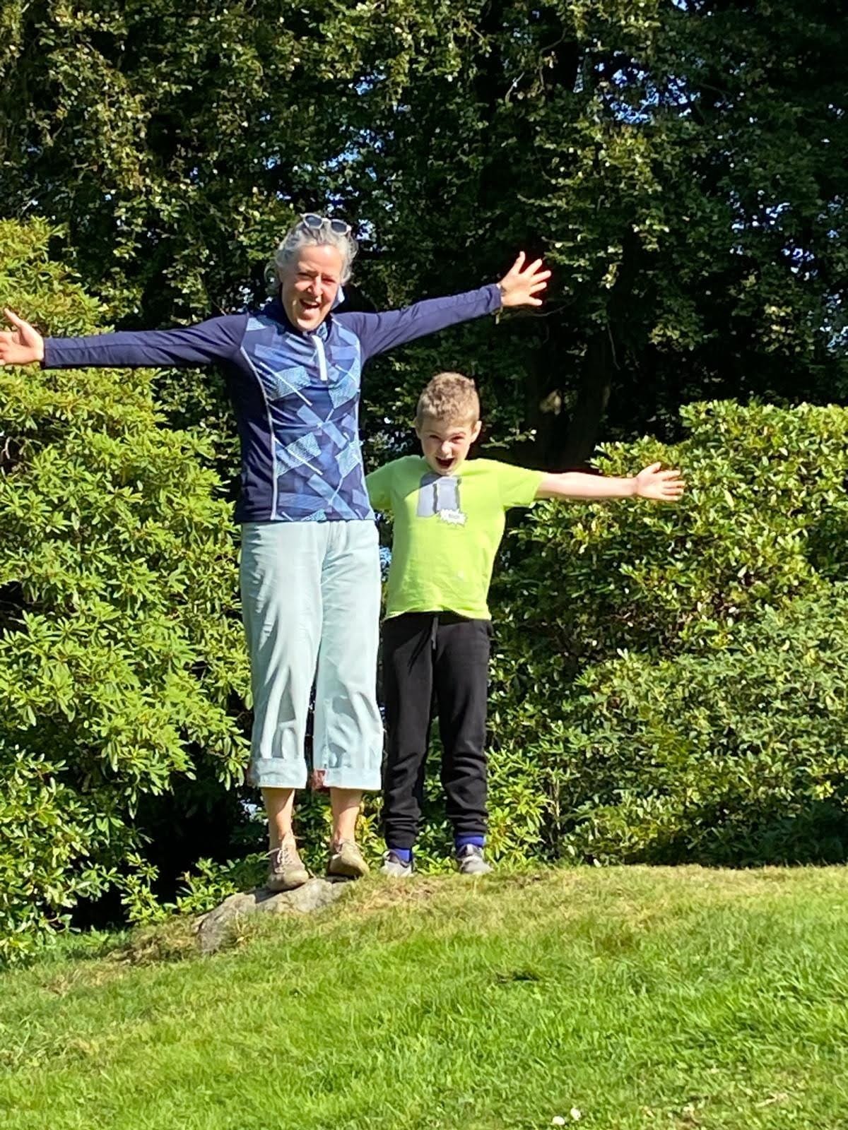 The next two Saturdays I went to Rowallane and Lady Dixon rose garden with Patricia and her two grandchildren. Patricia is nearly 70 and finds it tough going to be in charge of a 5 and 8 year old all day. They spend a lot of time at her house on their devices. We've had some lovely weather so I have been chauffeur to get them out and to give Patricia some reinforcement. Patricia says Alexander likes me because I'm a big kid. No argument. Here we are playing king of the mountain.
