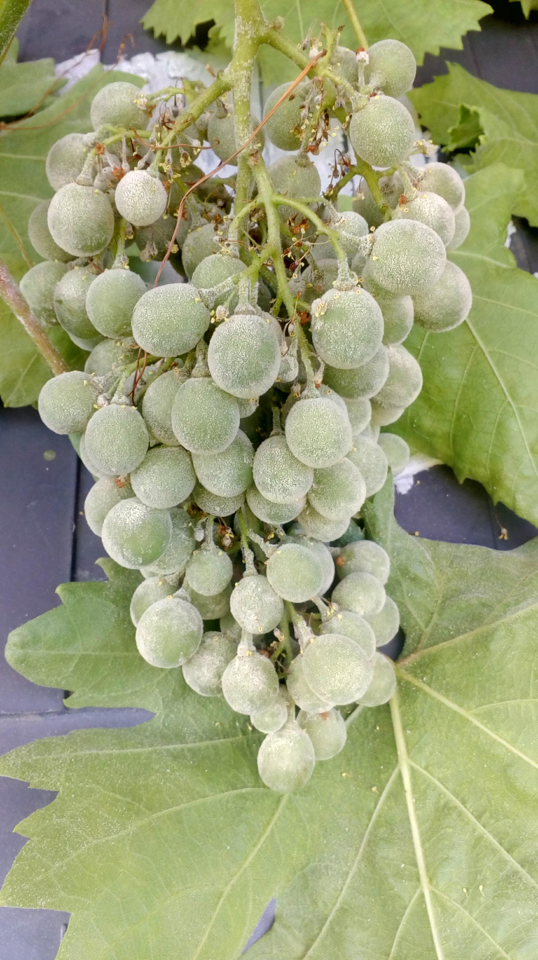 The house came with a grapevine that ran the length of the conservatory. For the past few years the grapes and leaves have been covered in a white powder mold. The only way I found to eradicate it was with a fungicide, which I'm not eager to spray in the room next to my kitchen.