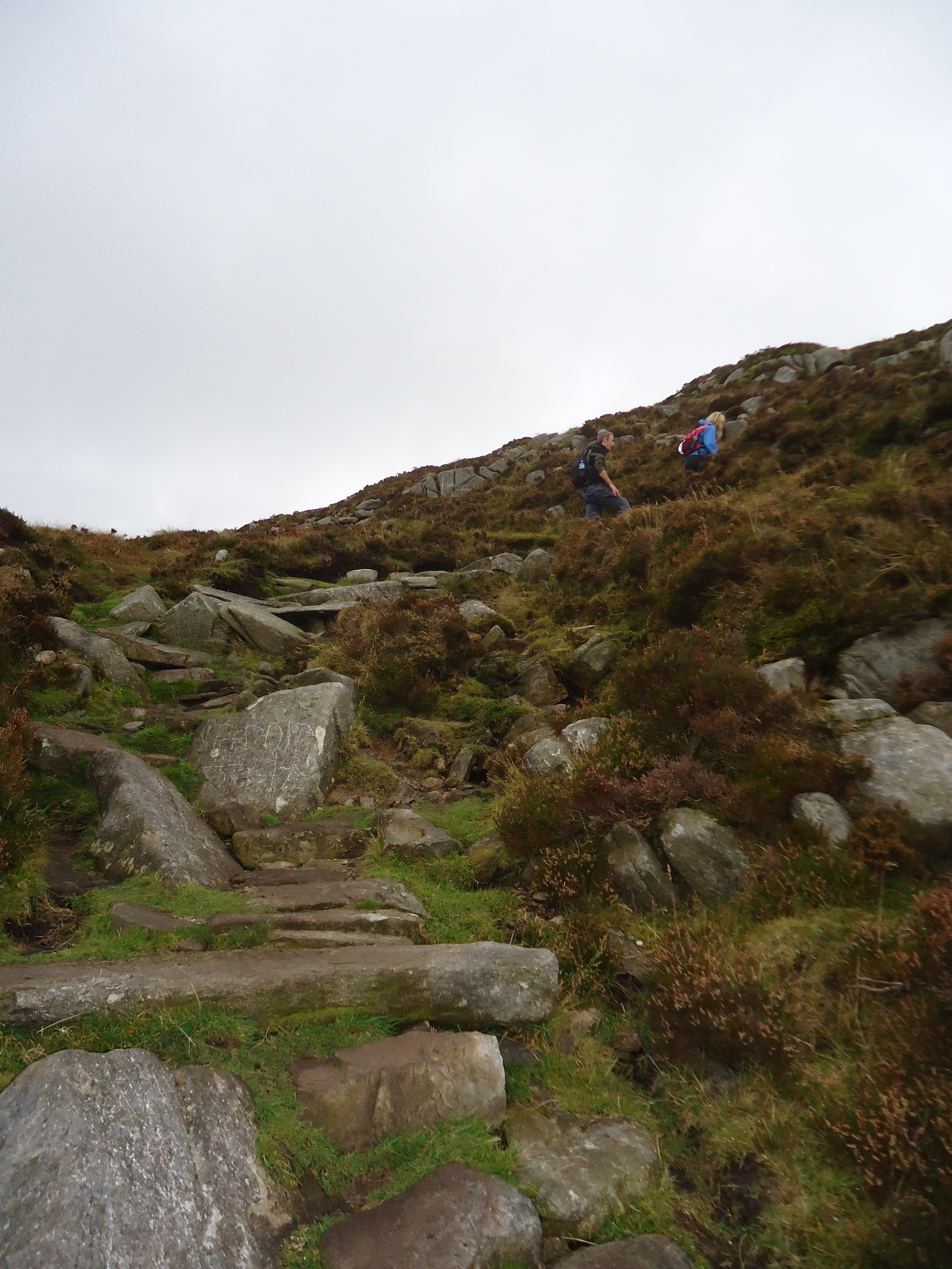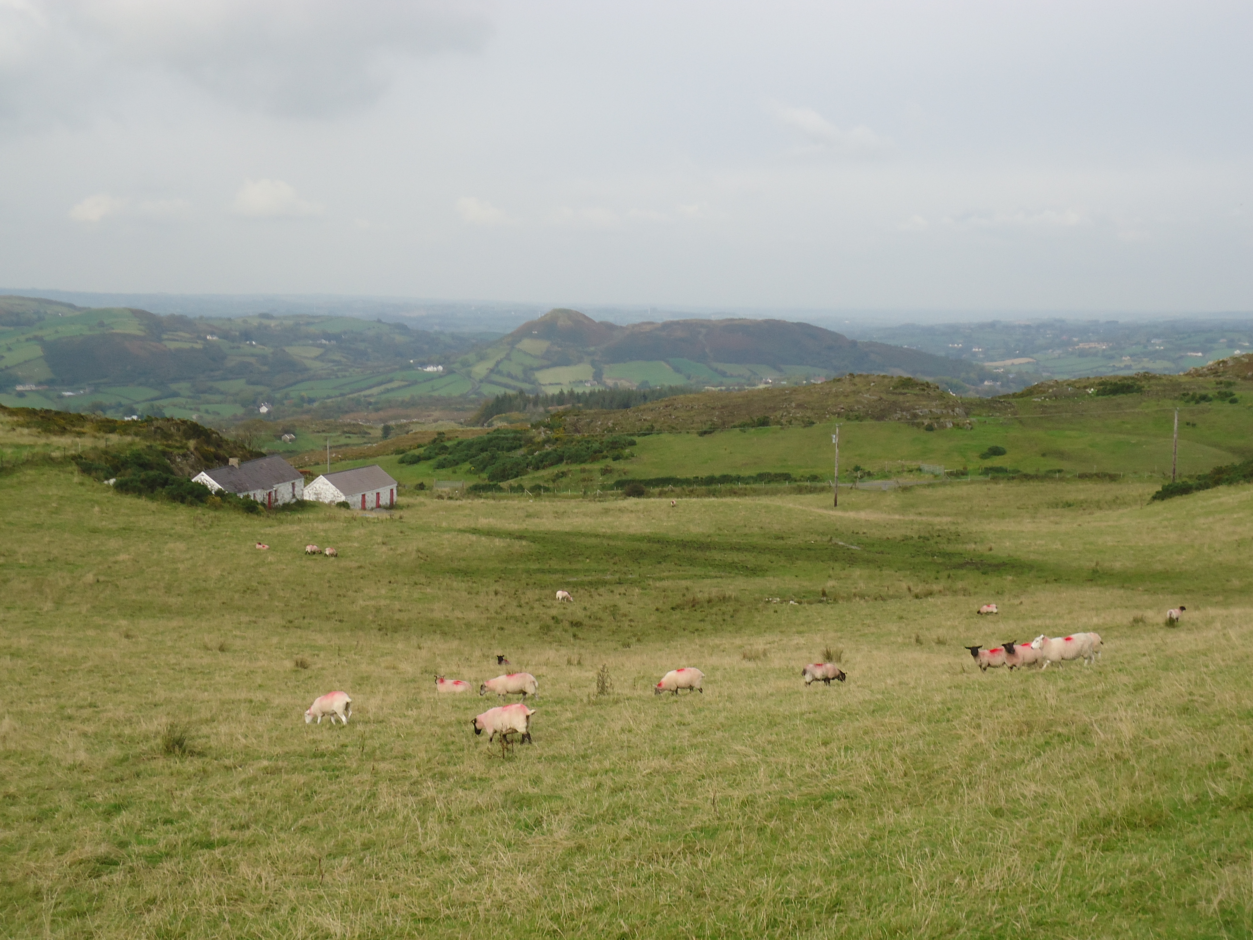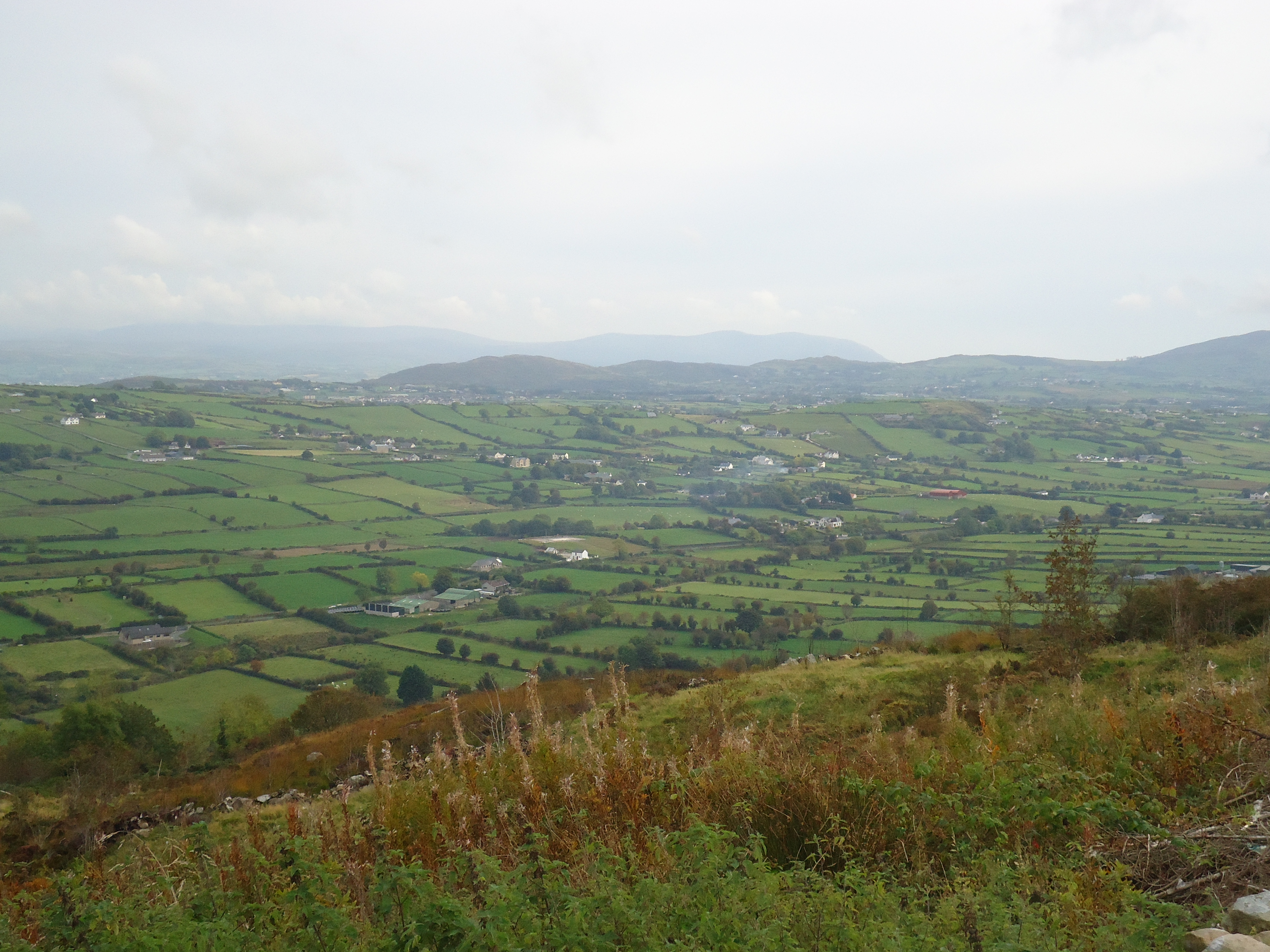 Today we hiked with a group of people up Slieve Gullion, which Wiki tells me "is the eroded remains of a Paleocene volcanic complex. It is surrounded by a ring dike known as the Ring of Gullion." At its summit is a burial chamber dating to 3,000 B.C. The hike was a 10-mile circuit which encompassed everything you want to see on a hike in Ireland. Such as: