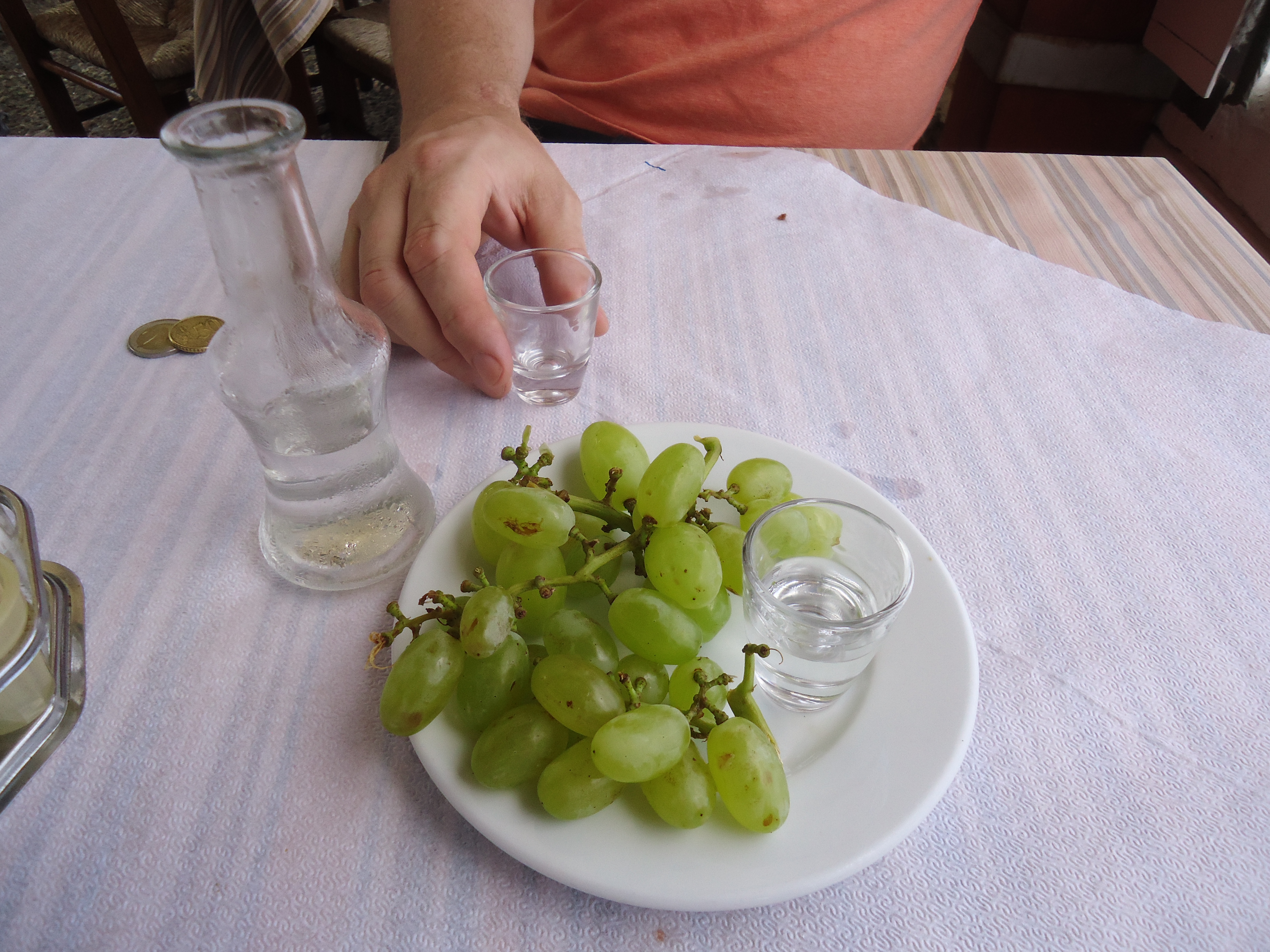 And dessert is a complementary pitcher of raki (very potent hooch) and grapes: