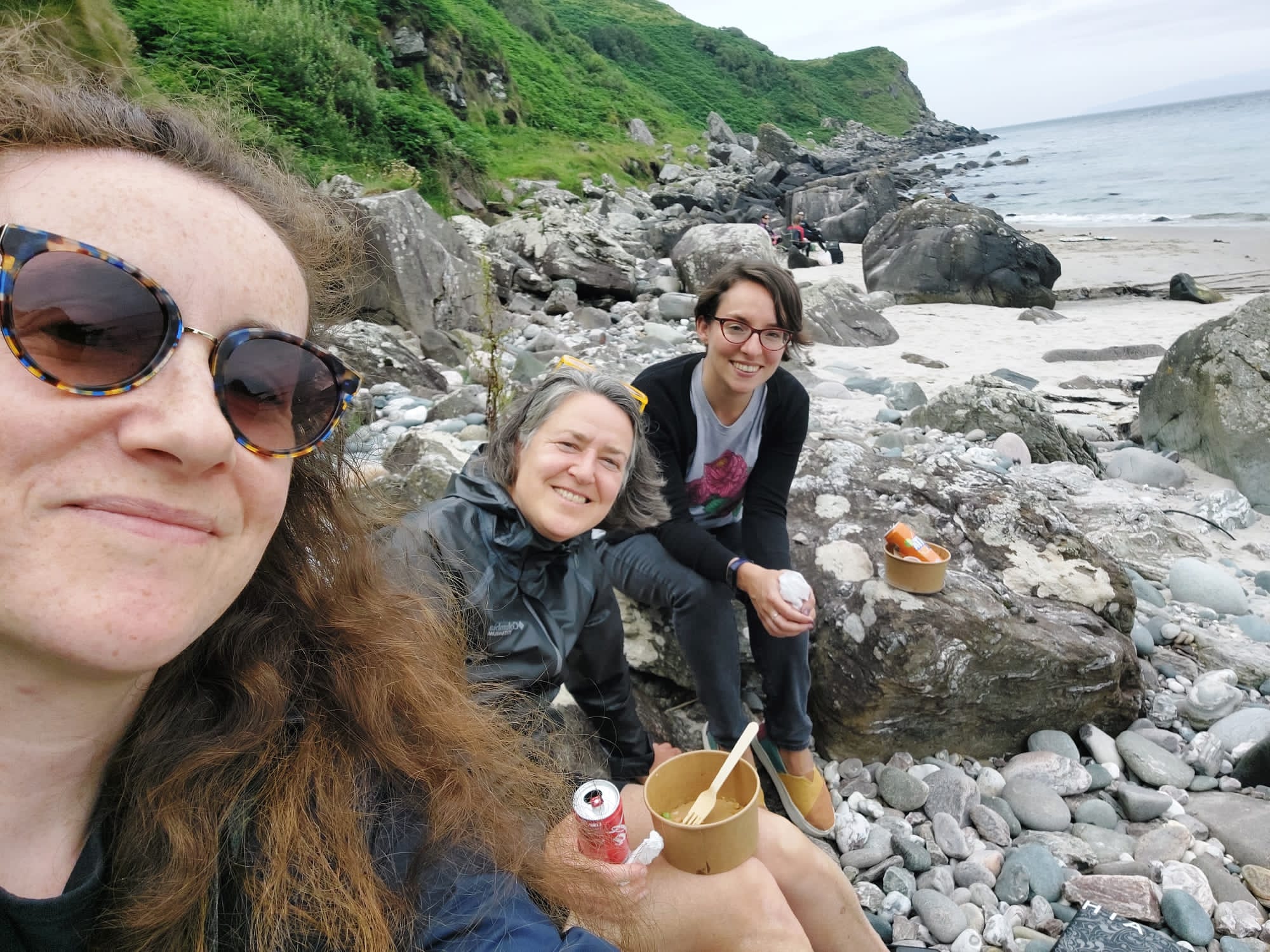 Monday was swimming at Helen's Bay, then home for showers, then down the coast to Whiterocks for lunch at Daft Eddy's, with a lovely view of the harbour. We quizzed Jasmin about her recent solo trips to Italy and Jordan--how to best travel alone. From there north to Belfast, where we left Jasmin to catch the shuttle back to Aldergrove. An hour or so later, I took Rachael to the city airport, concluding a weekend that was fun, interesting, enlightening, and empathetic. I'd say we are very good at listening to and supporting each other. How many people can say that about their co-workers? It's also very cool to be around people so much younger than me--they take a different viewpoint on a lot of things that I find it very healthy to consider.
