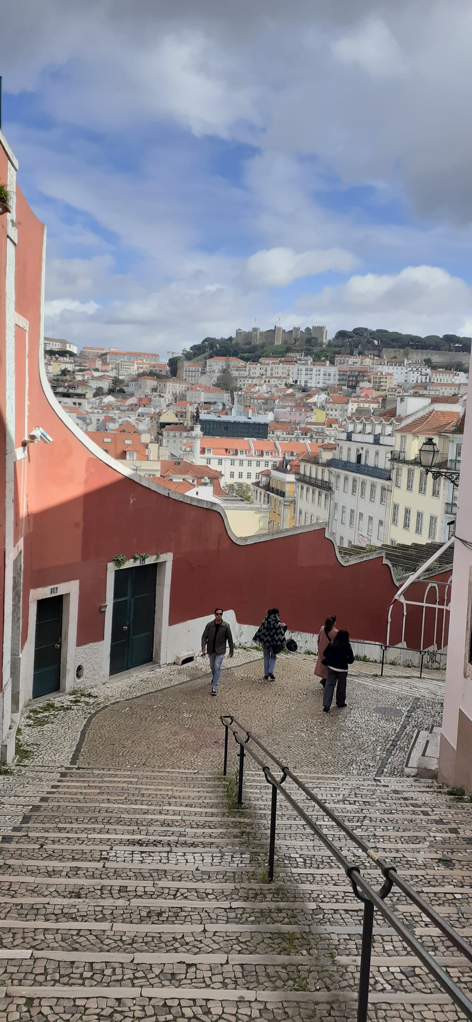 Dara cycled 30 miles. I could no more do that than tile a Portugese public square. I really enjoyed my walk though. I climbed a lot of stairs to get to a church Joe recommended (pictured above, stairs below).