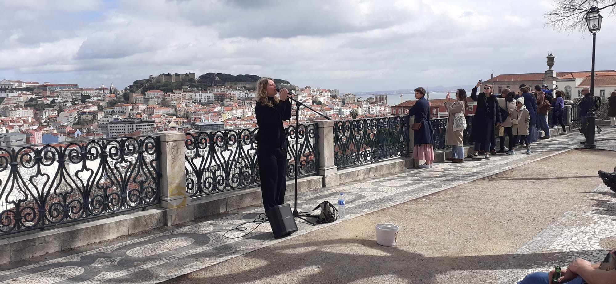 Joe said I would enjoy the view from the church, which I surely did. This woman was singing Adele, at least as good as Adele, so that added to the pleasure of the day. You can see the bay in the distance.