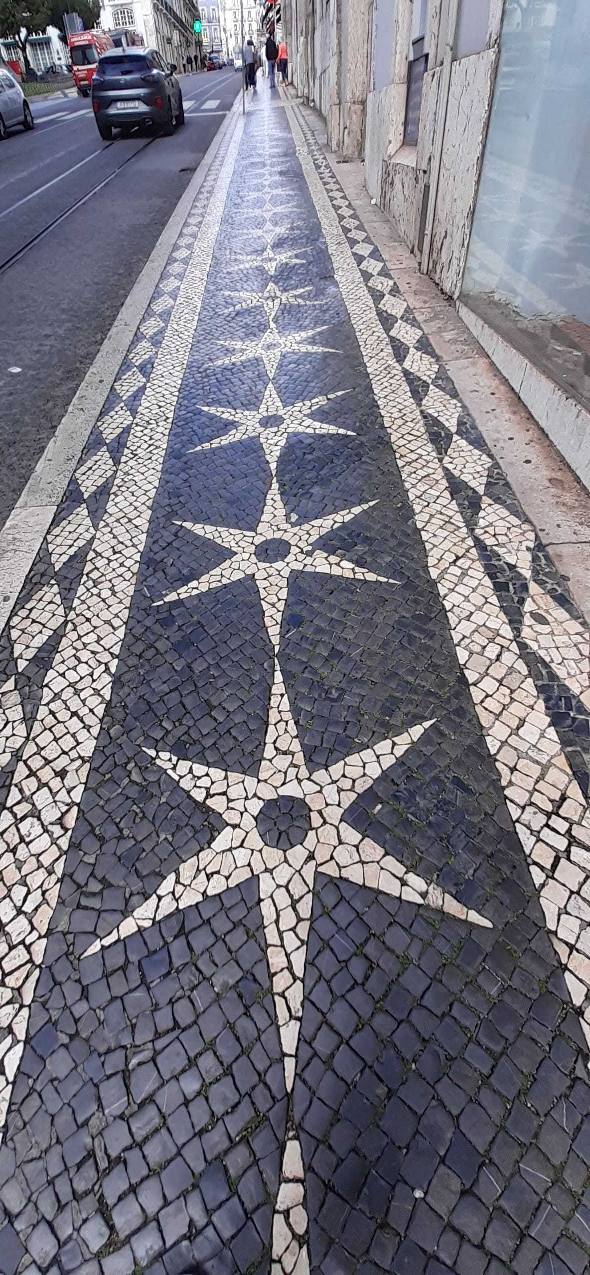 I imagine, strictly speaking, these massive courtyards are cobbles, not tiles? Not sure. But the workmanship and the thought that goes into each design is mind blowing. Here's a sidewalk: