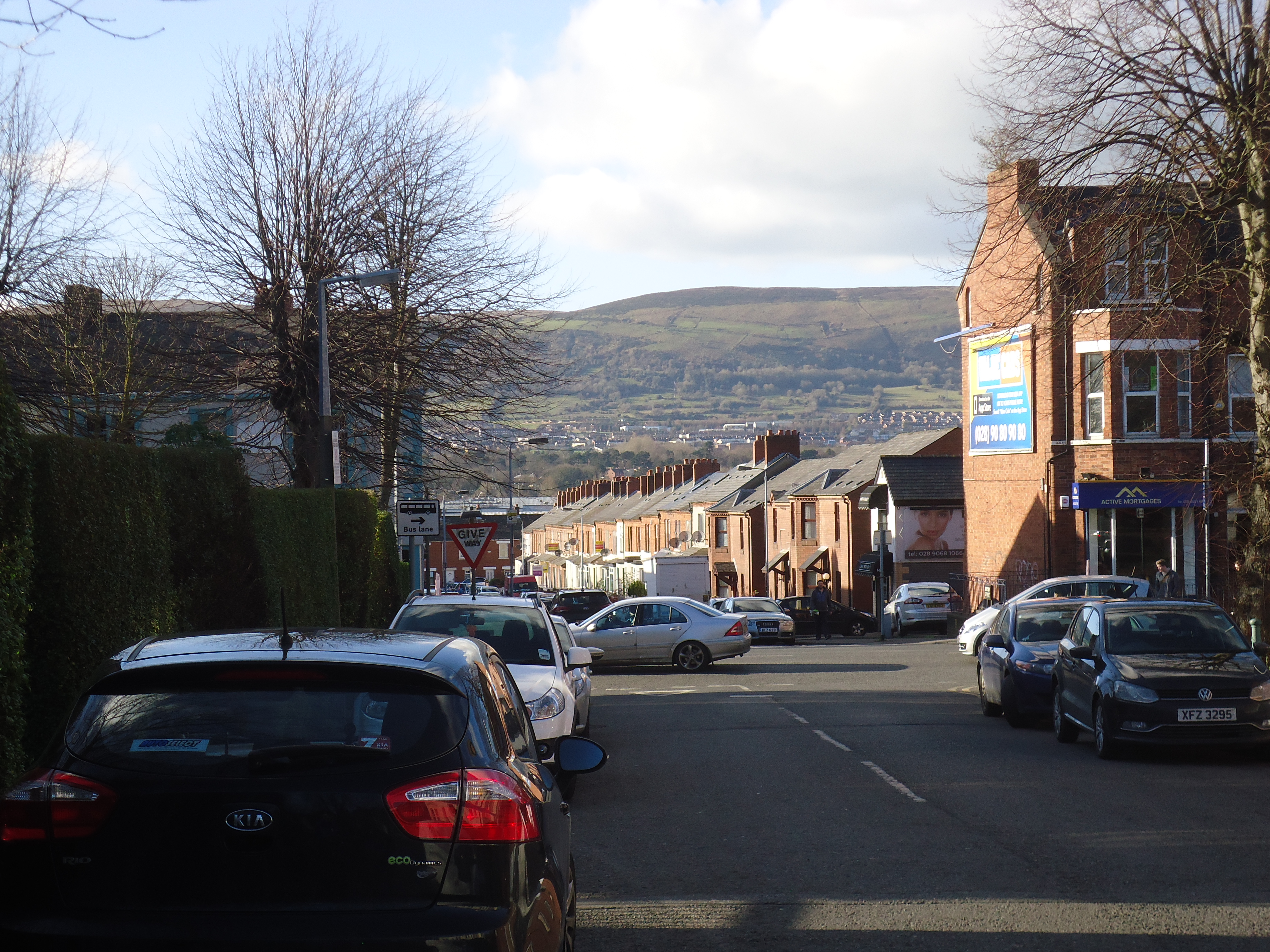 When all else fails, add a photo. I love how Belfast is surrounded by hills. This is a common sight, red brick row houses with a green backdrop.