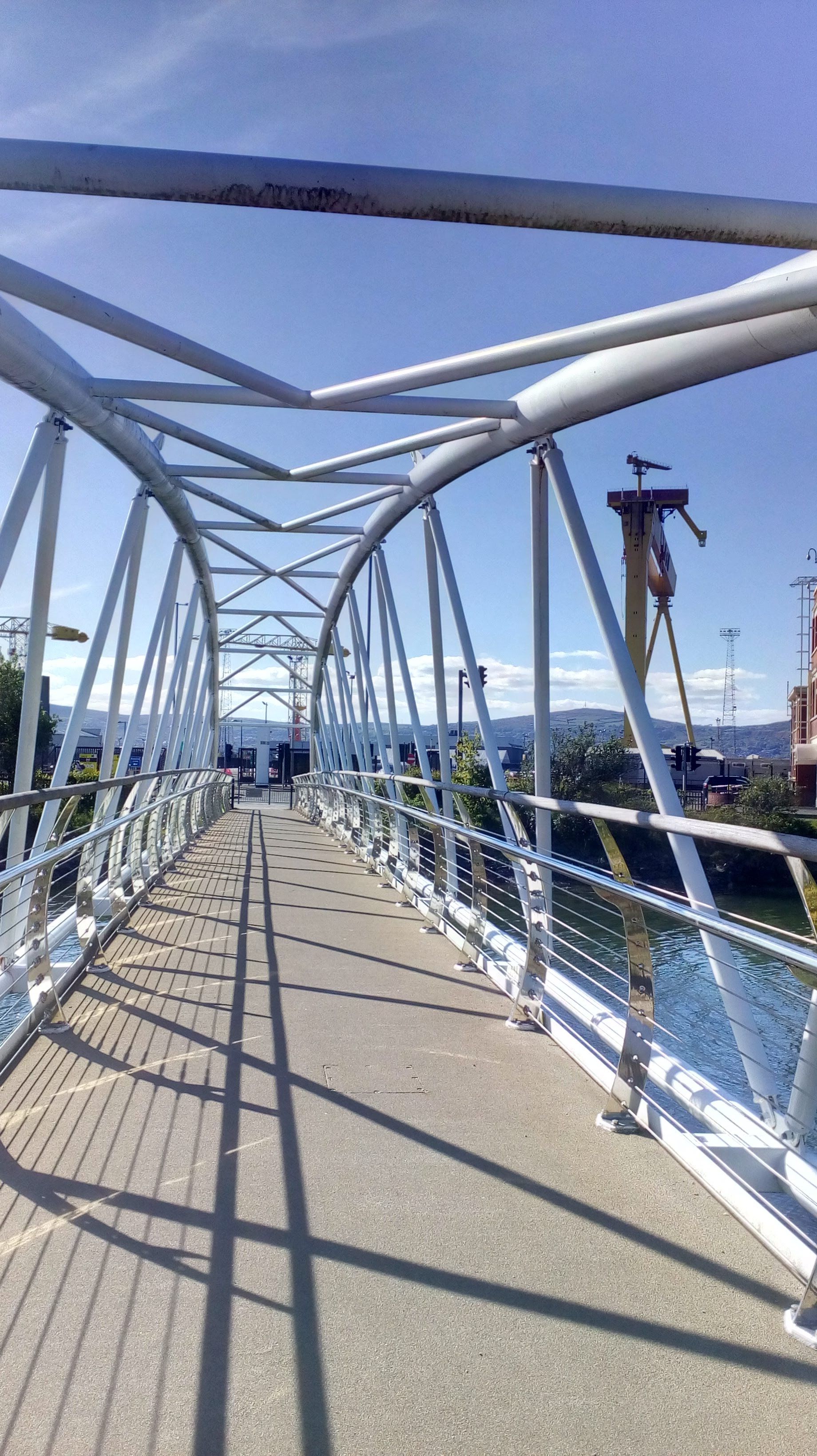 This is the Sam Thompson bridge from Victoria Park to an industrial area of Belfast that's great for cycling. Wide flat road, no traffic, and it leads to the lovely coastal path.
