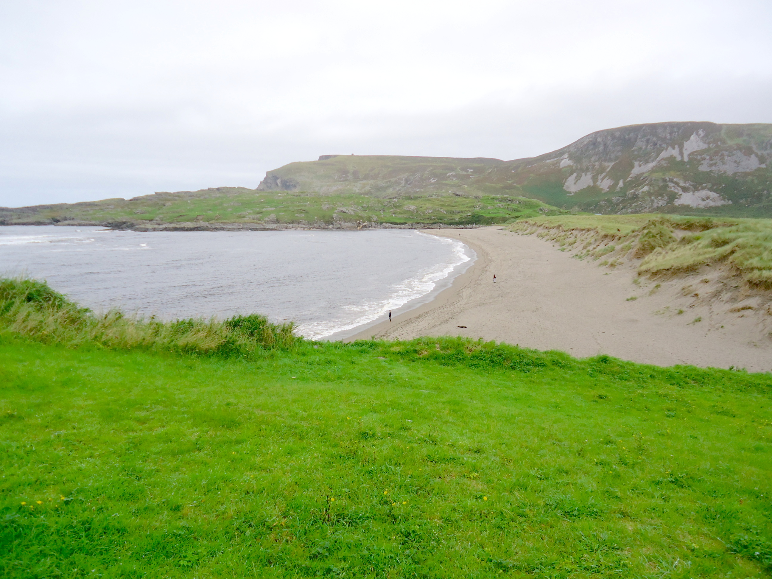 Donegal is such a beautiful county. Highland bogs, rushing rivers, heather interspersed with scree, stone cottage ruins, stone walls. It is a gorgeous place to drive around. My photos don’t do it justice. This is the strand at Glencolumkille: