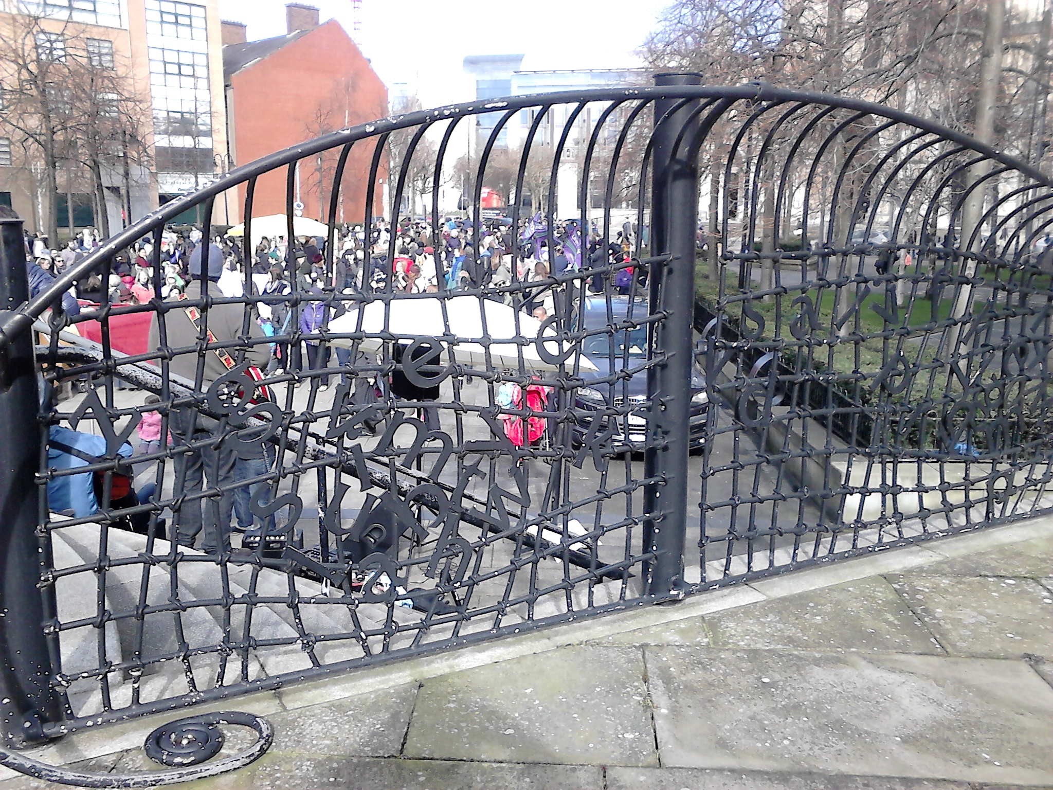 Belfast does a lot of creative things with railings. See if you can see the alphabet scattered on the railing--an homage to Writers’ Square.
