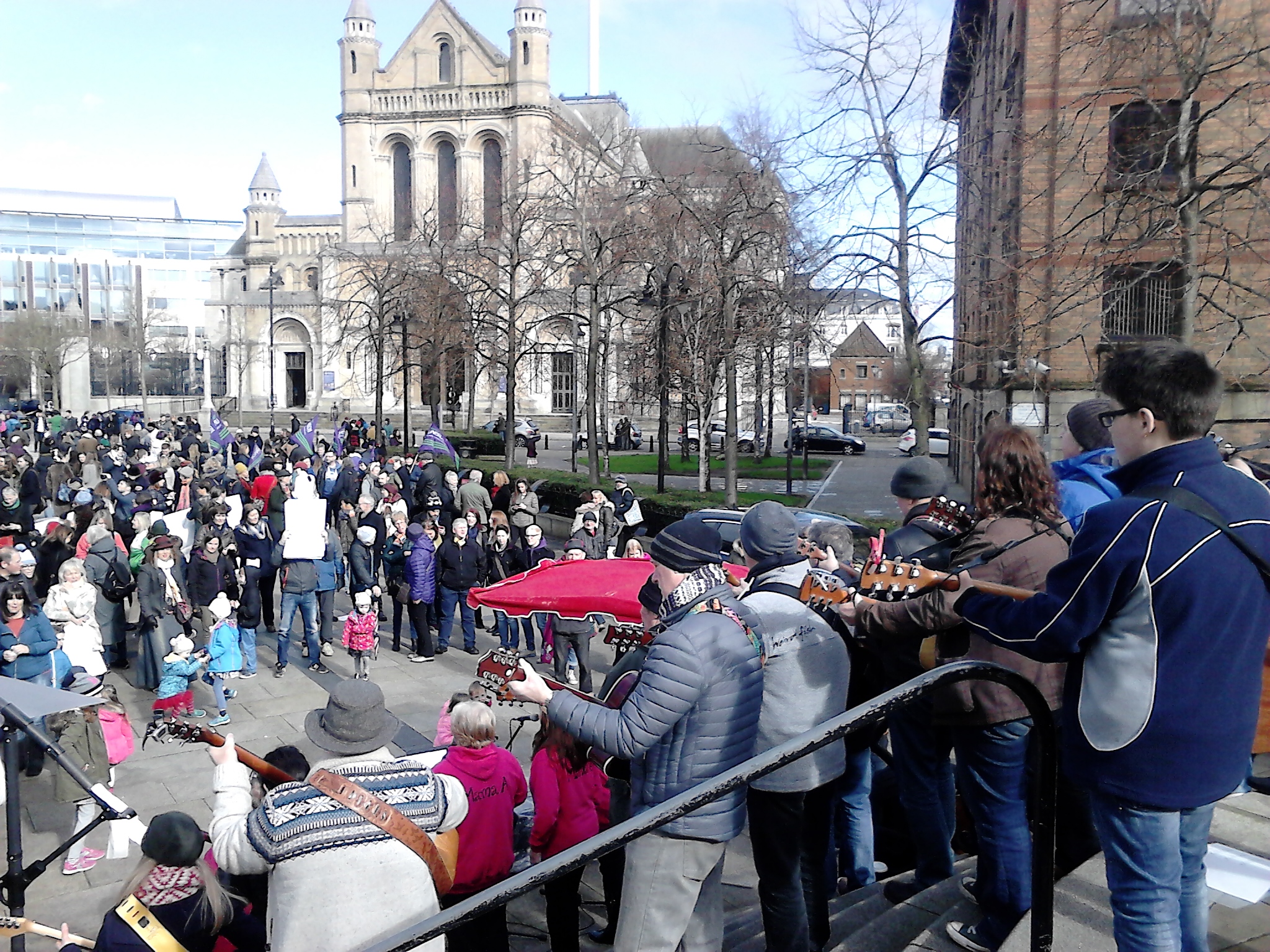 I walked 15 minutes each way from the house to Stormont then, after a shower, I walked 12 minutes to the bus stop to go downtown. Once downtown another 15 minutes to Writers’ Square, where I heard David perform with the Belfast Guitar Orchestra.