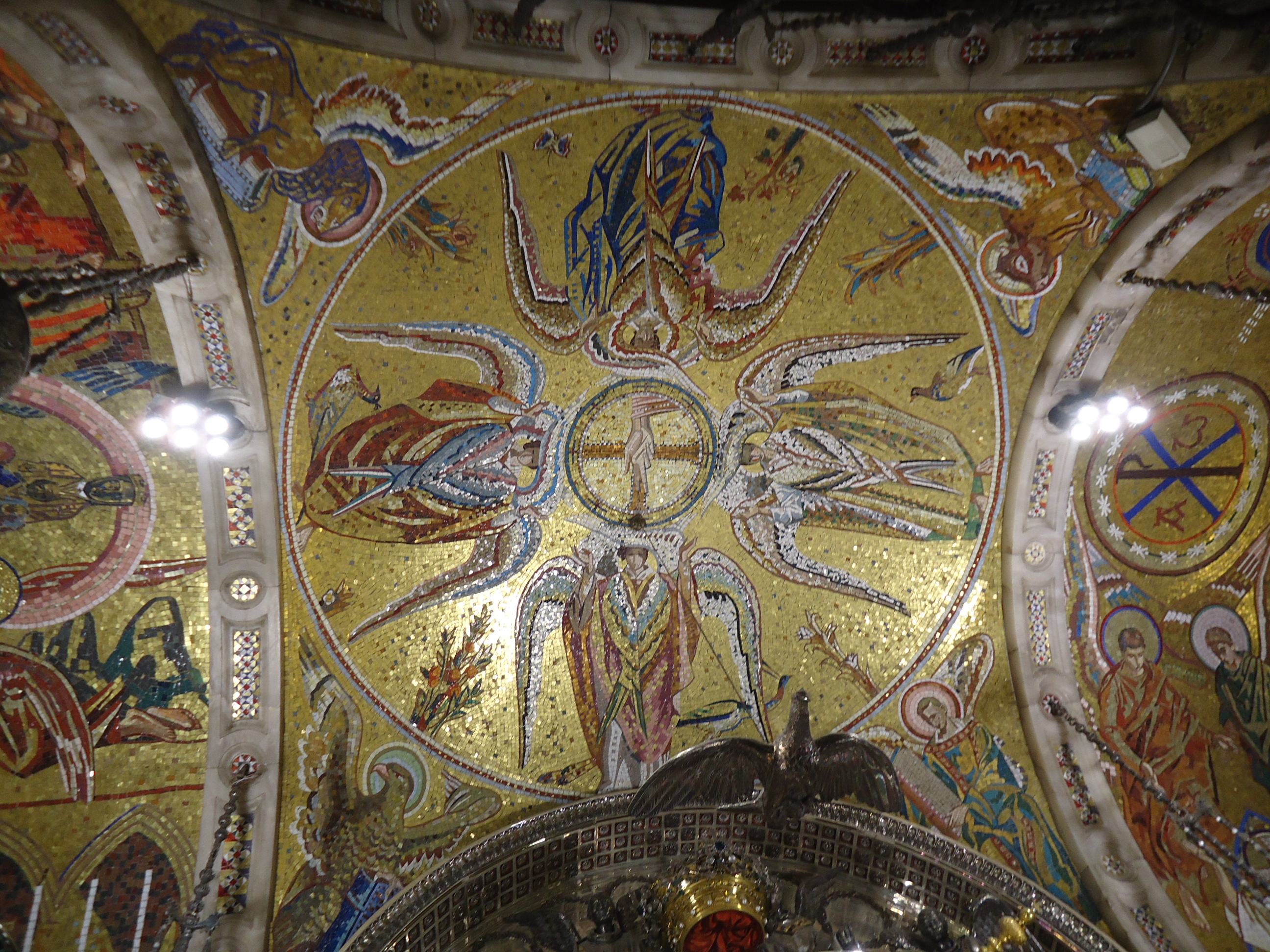 Way back in Barcelona, when I was writing about the black madonna and religion’s fetish for the extraordinarily ornate, I think I missed this photo. My photo management skills aren’t the best. This is the ceiling above the madonna.