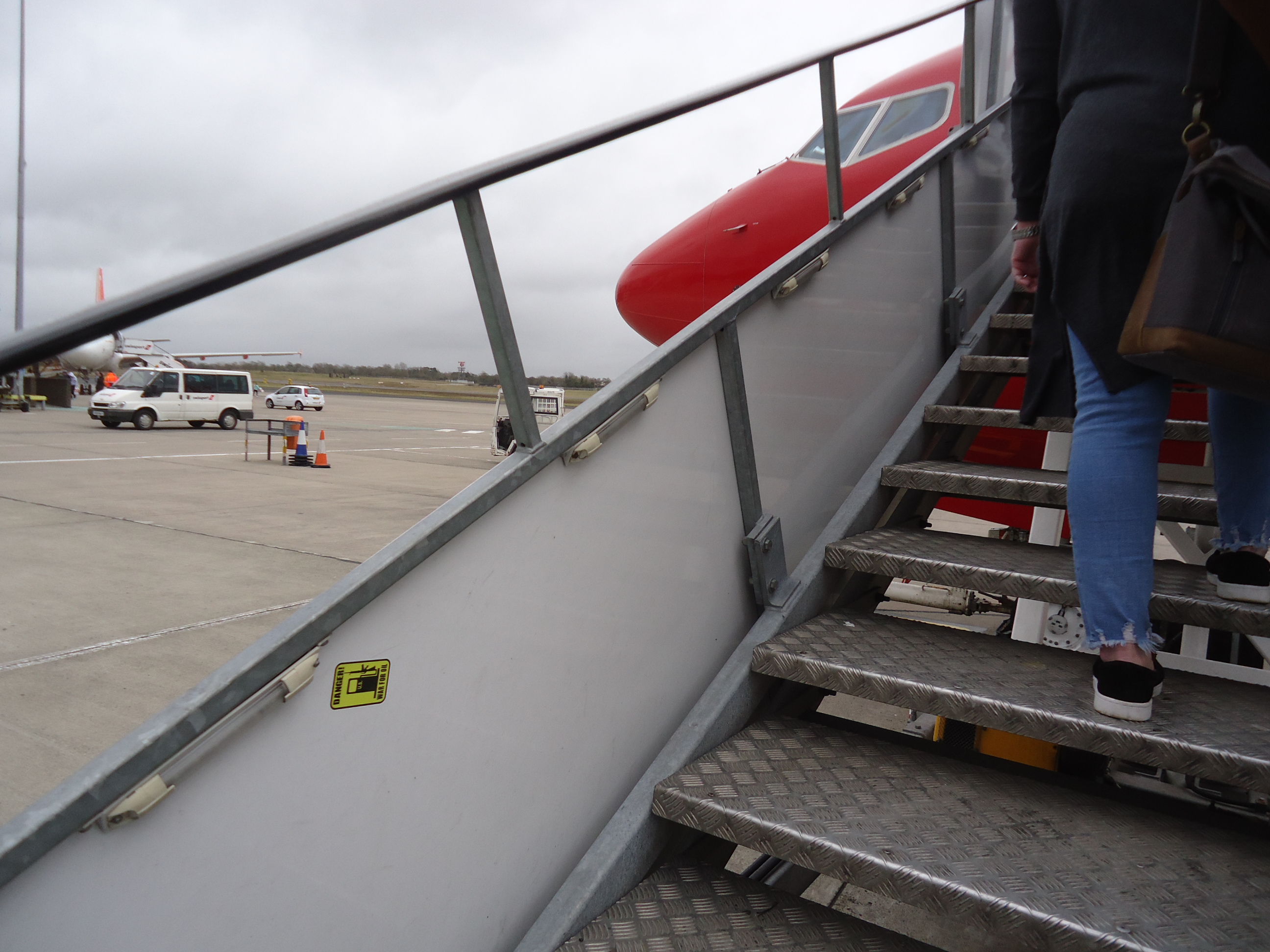 Norwegian Air is the new discount carrier with cheap flights from Belfast to Stewart, NY. As I board, I see this sticker on the stairway: