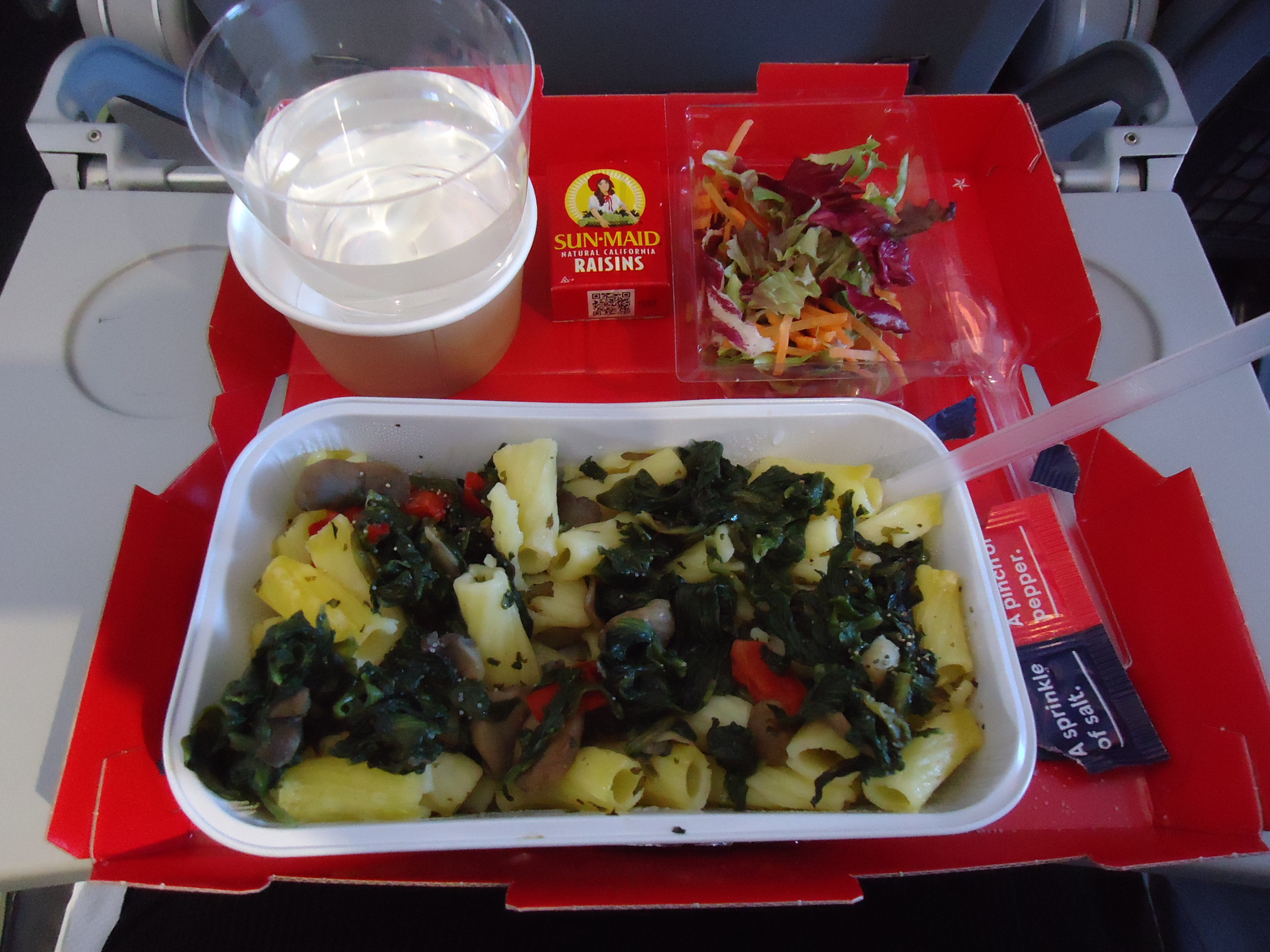 I don’t think it conveys how small the portion was. It was not what I’d consider a meal portion. The salad was maybe 2X3 inches. And a tablespoon of raisins. I had two candy bars with me and ate both of them. By the time I got to Stewart I was faint with hunger. I wolfed down a veggie sub at Quiznos then caught the 1.5 hour shuttle bus.