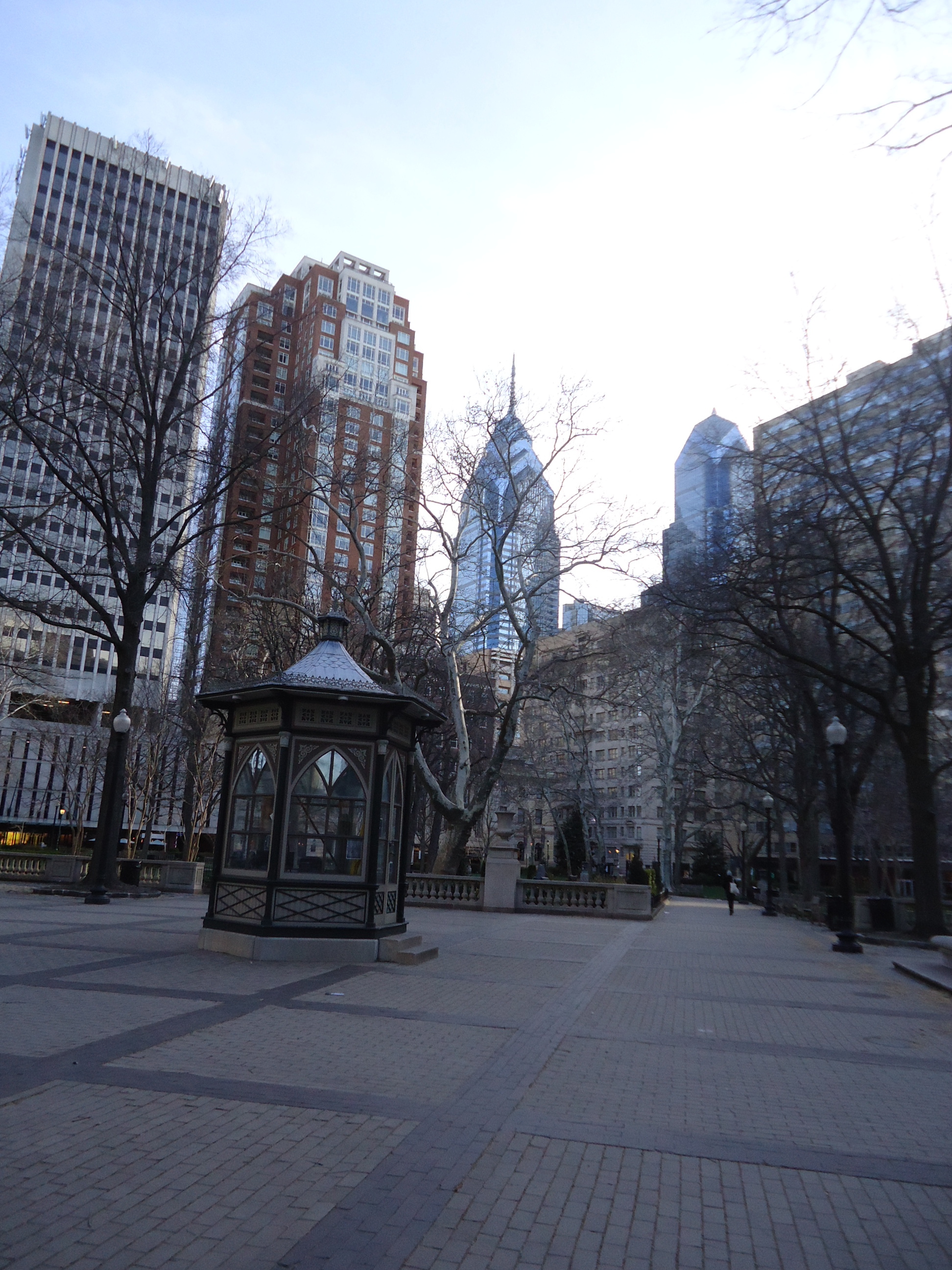They’re on the 7th floor and have lovely views on two sides, including catching some very colourful sunsets this time of year--all tangerine and cotton candy. They’ve collected art depicting Philly, just as I’ve collected Irish landscapes. They have a painting of this gazebo in Rittenhouse Square, for instance: