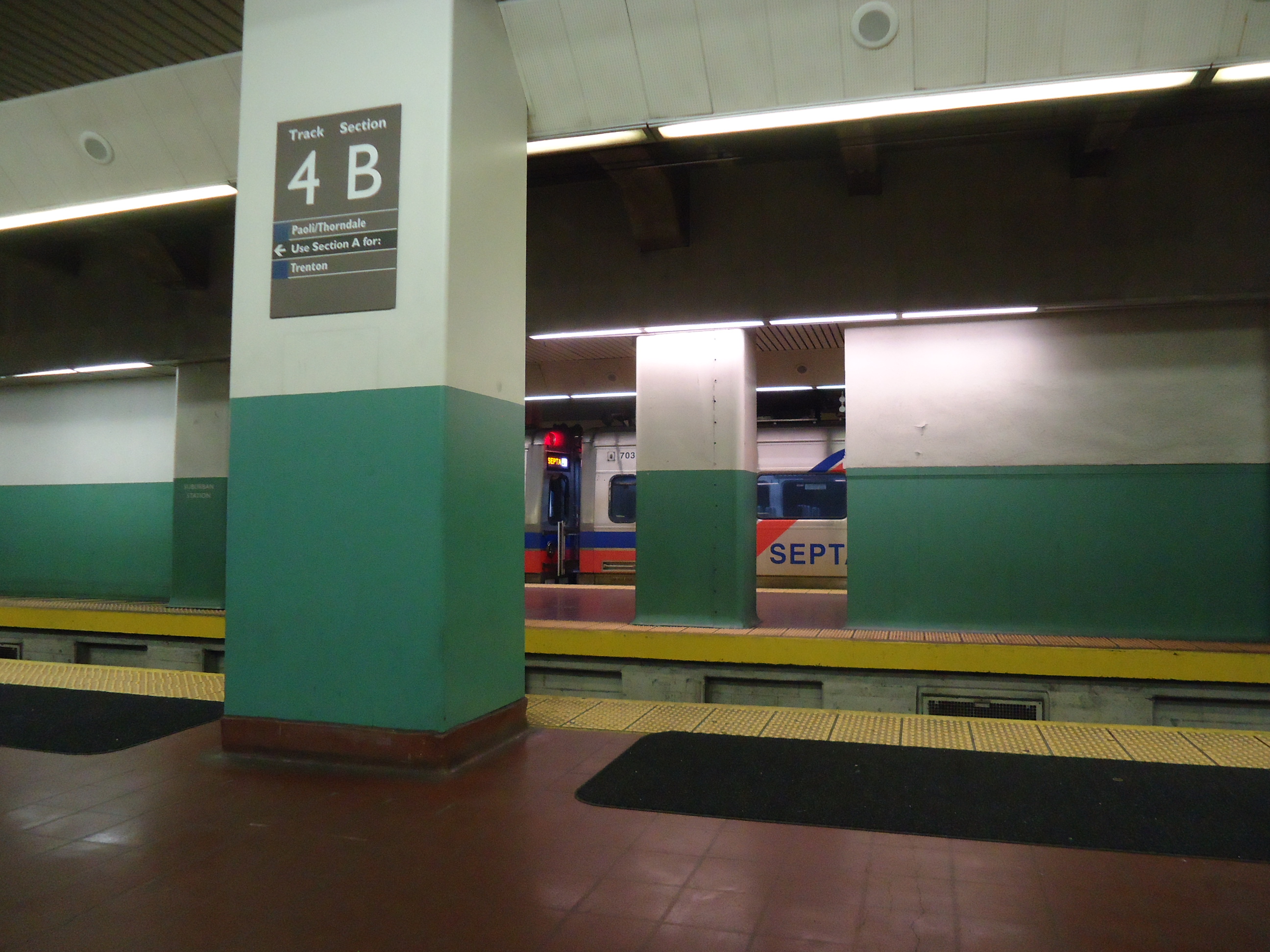 After spending eight days in London, I was amazed at the state of the subways in New York and Philly. Not only are the cars and the technology very old, the experience is dismal. I learned that the colour in Suburban Station is called hospital green.