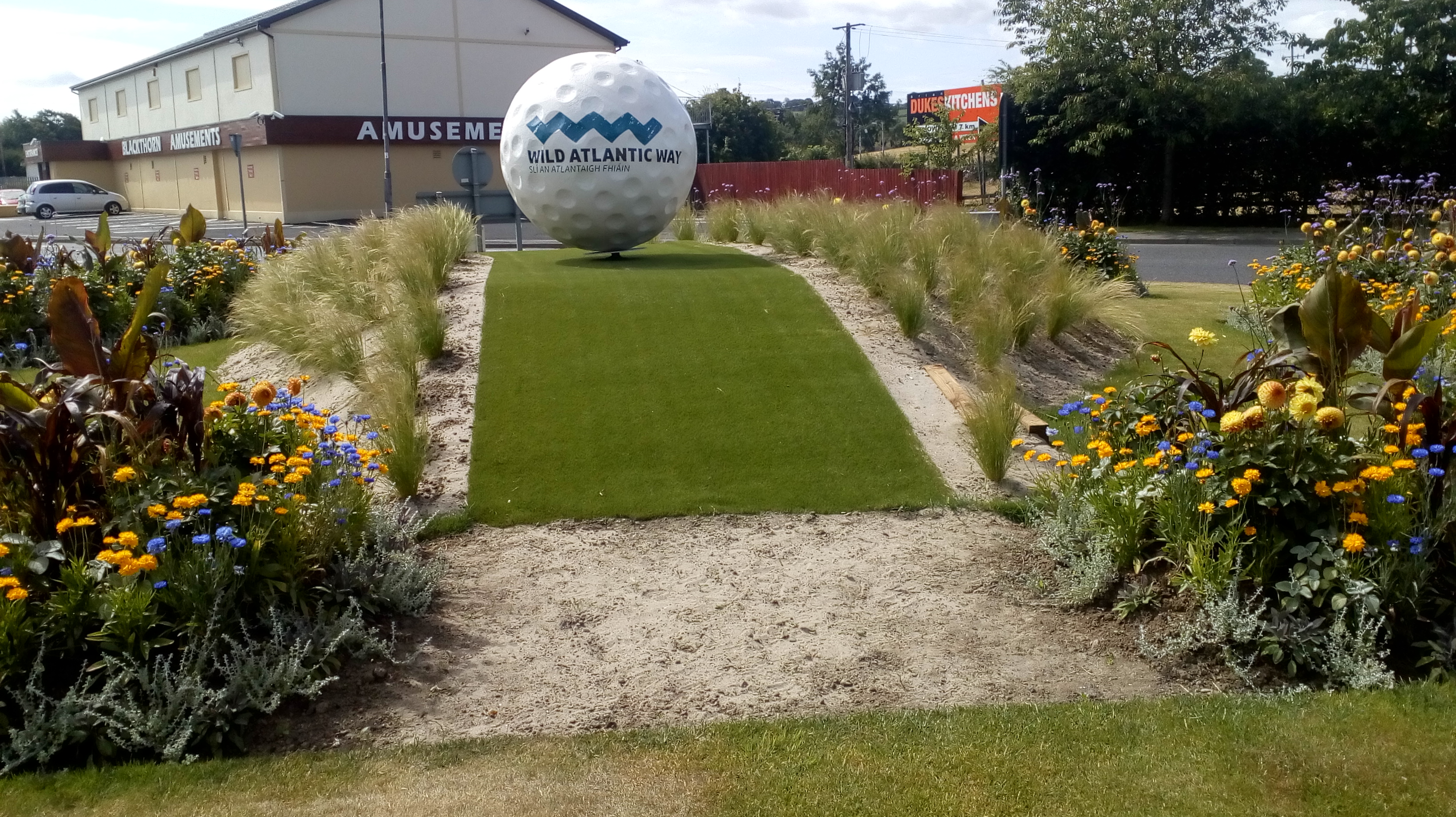 A hearty breakfast and then a quick walk through an art gallery in lovely Ramelton, then on to the golf. This was in a roundabout on the way to Ballyliffin.