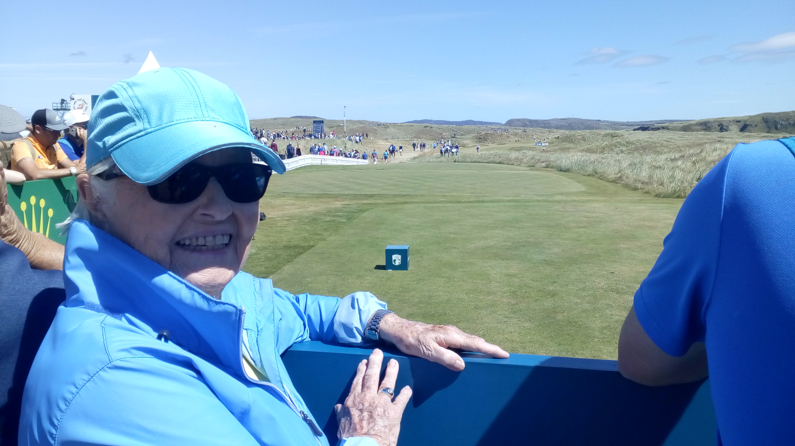At the 18th grandstand. As usual, mom was a trooper, walking carefully up and down dunes and stairs. All in all, a good day at the golf.