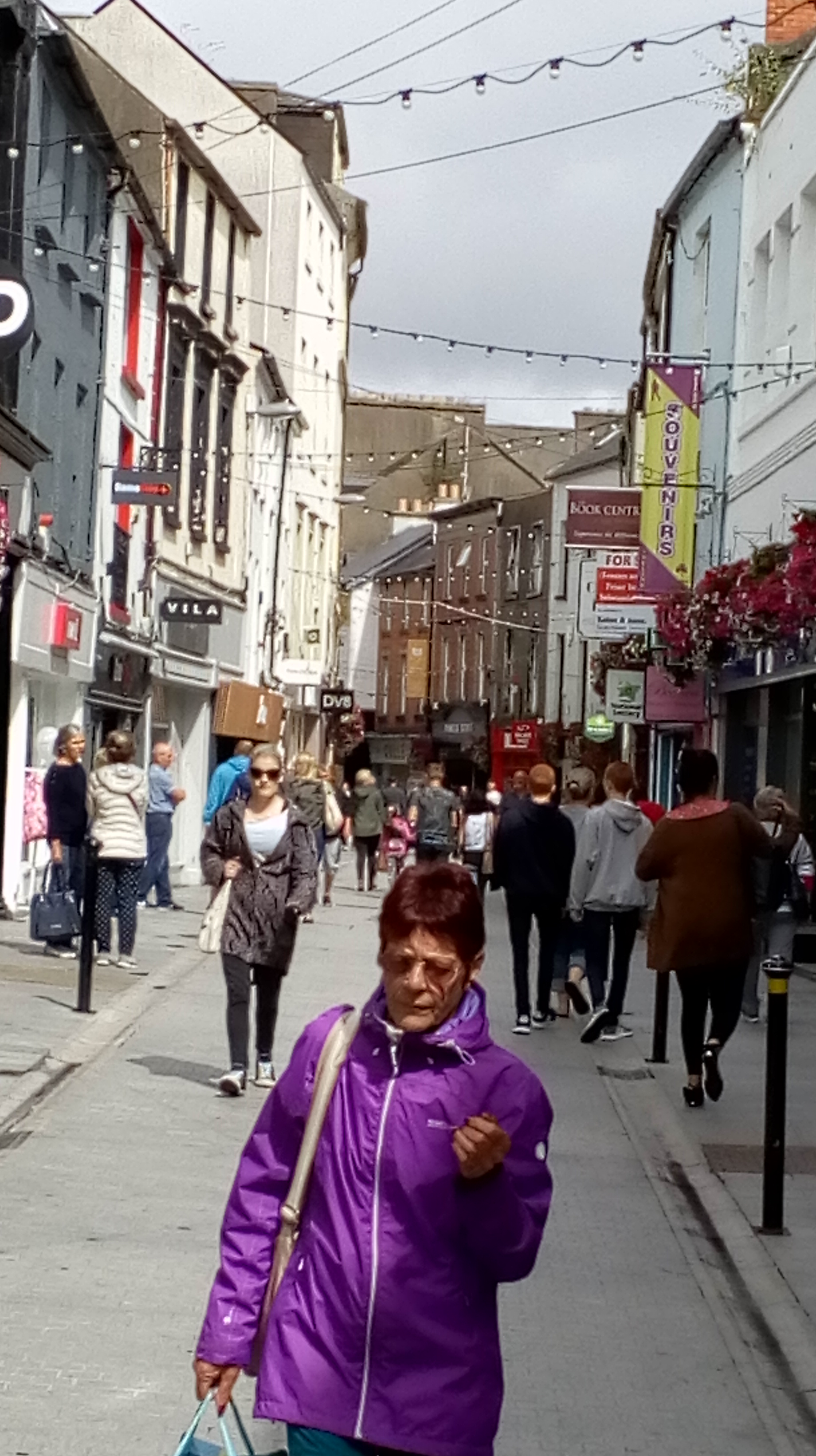 It’s hard to see in the photo above but you have two lovingly cared for homes next to an abandoned property with buddleia growing out of it. Below is the main shopping street of Wexford.