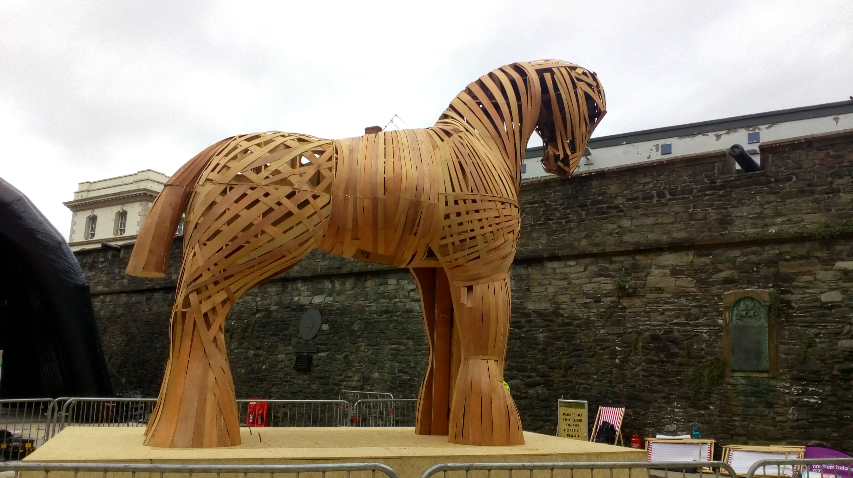 "In Derry’s Guildhall Square will stand Odysseus’s cunning idea of The Trojan Horse under the Walls of Derry evoking both the Troy and Derry sieges.”