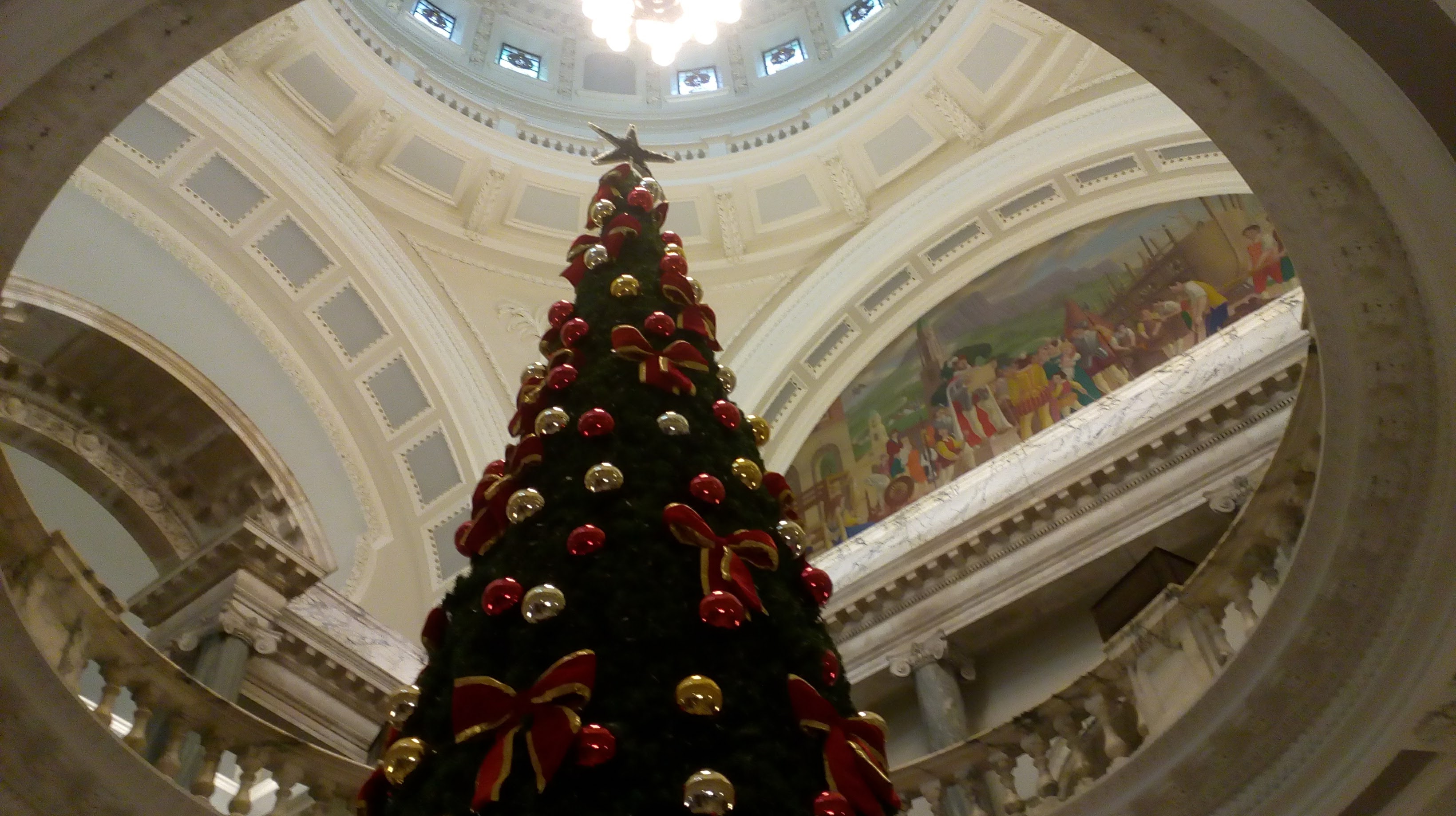This photo captures the top of a very tall tree. It was odd to be in the seat of power at an event attended by people who have no power. City hall looked festive and lovely. The refugees and asylum seekers live in the absolute worst housing in Belfast--and many are homeless. It was a bit jarring.