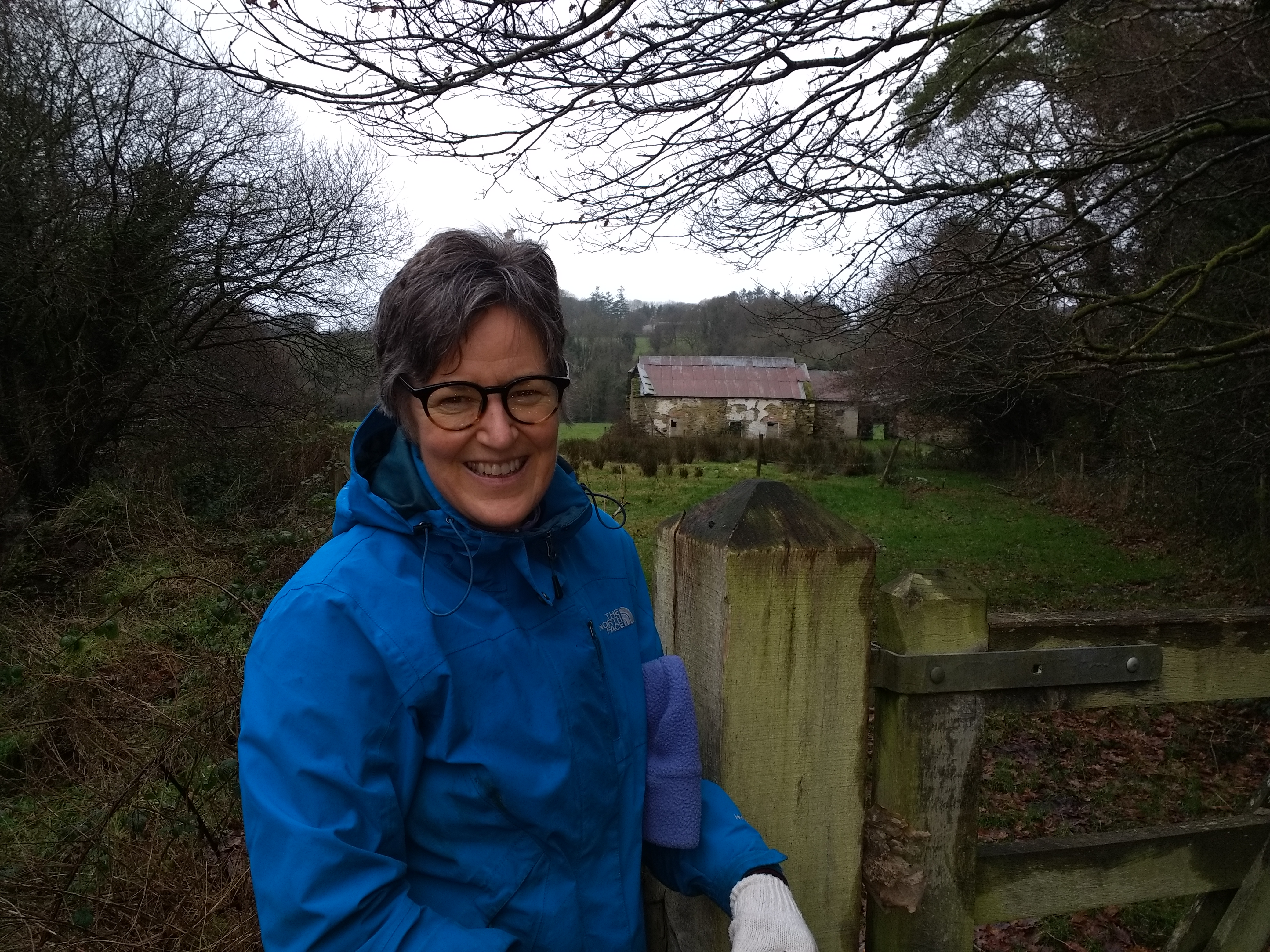 Julie, her friend, Elizabeth, and I went for a three-hour hike today in the two forests named above. The woods were gorgeous and much of the trail was either along the Burntollet River or at the top of a gorge looking far down onto the river and its many waterfalls. The river is full of massive boulders, which makes for a noisy and dramatic flow of bracken-brown water. There’s a gallery on this page but it doesn’t do the park justice. I forgot my camera but Julie took one photo on her phone near a picturesque ruin.